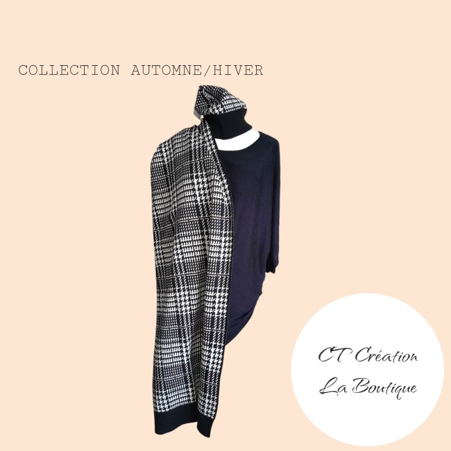 Ensemble classique et chic Bonnet et longueur écharpe motif pieds de poule