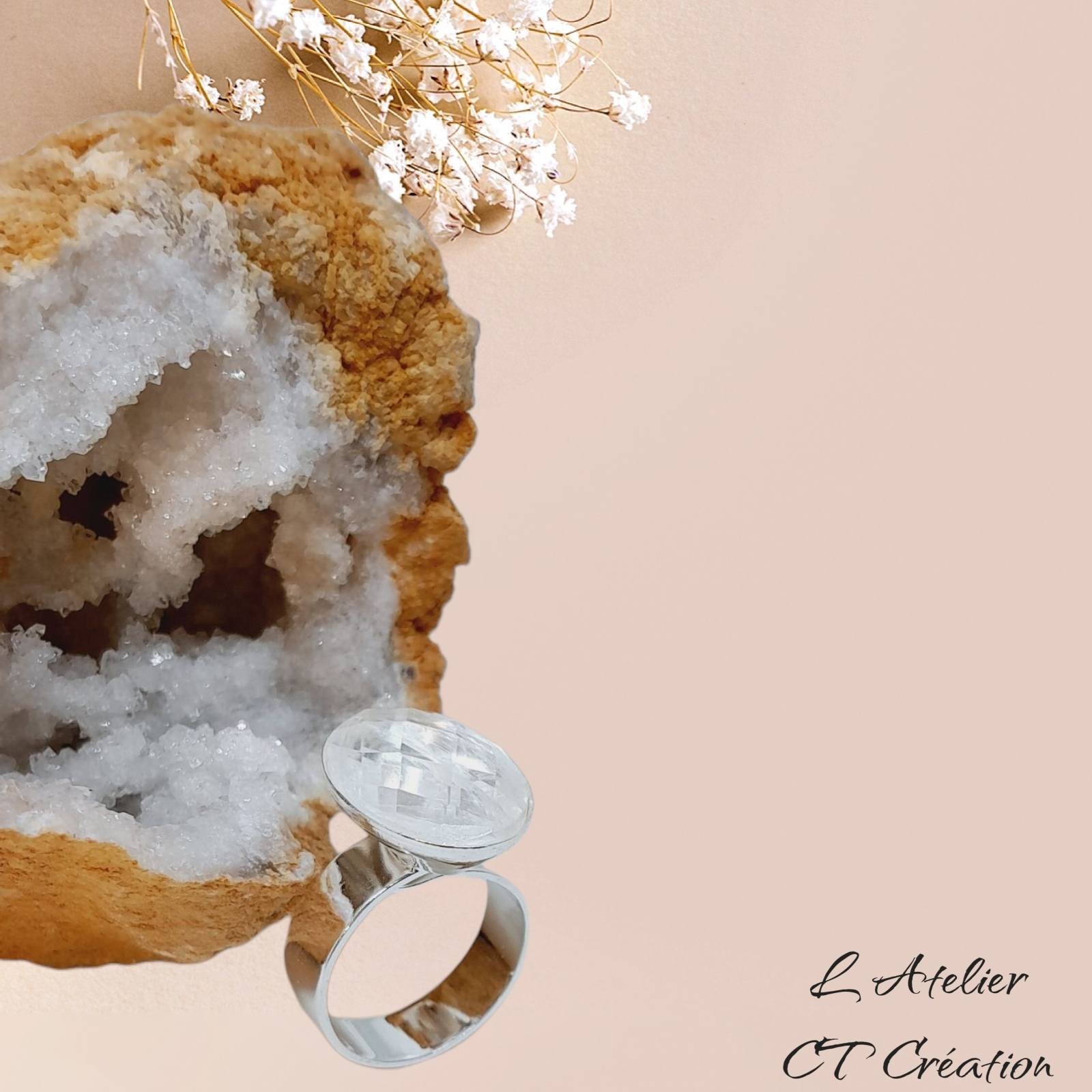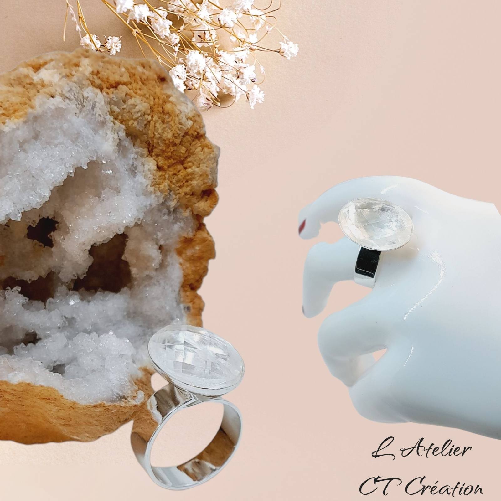 Cabochon bombé épais Cristal de Roche extra à facettes (18mmx13mm)