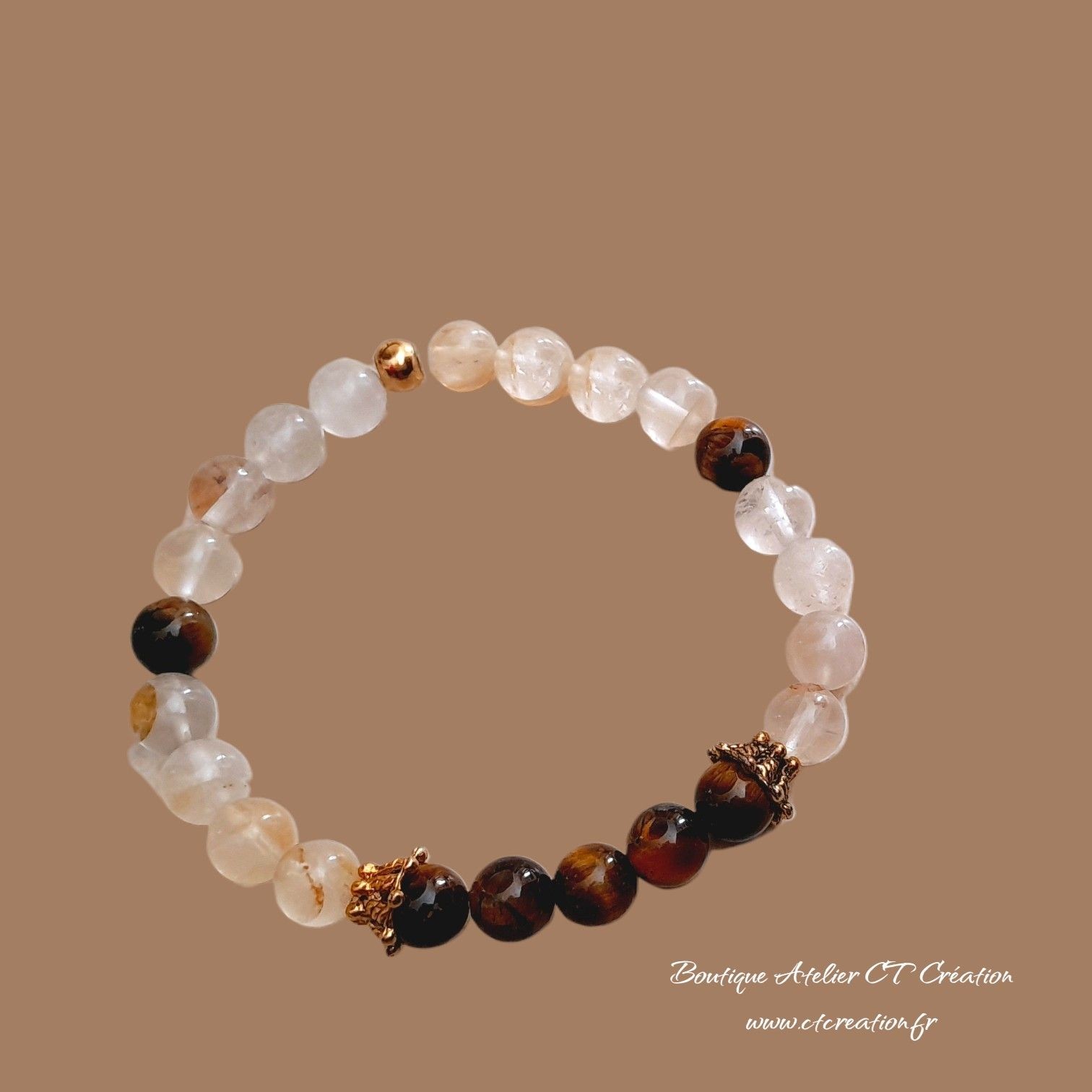 Perles en Citrine et Oeil de Tigre 6mm ou 8mm (en fonction de la taille du poignet)