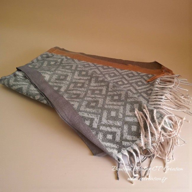 Belle écharpe longue, chaude et élégante, en tissu doux avec des franges aux extrémités.