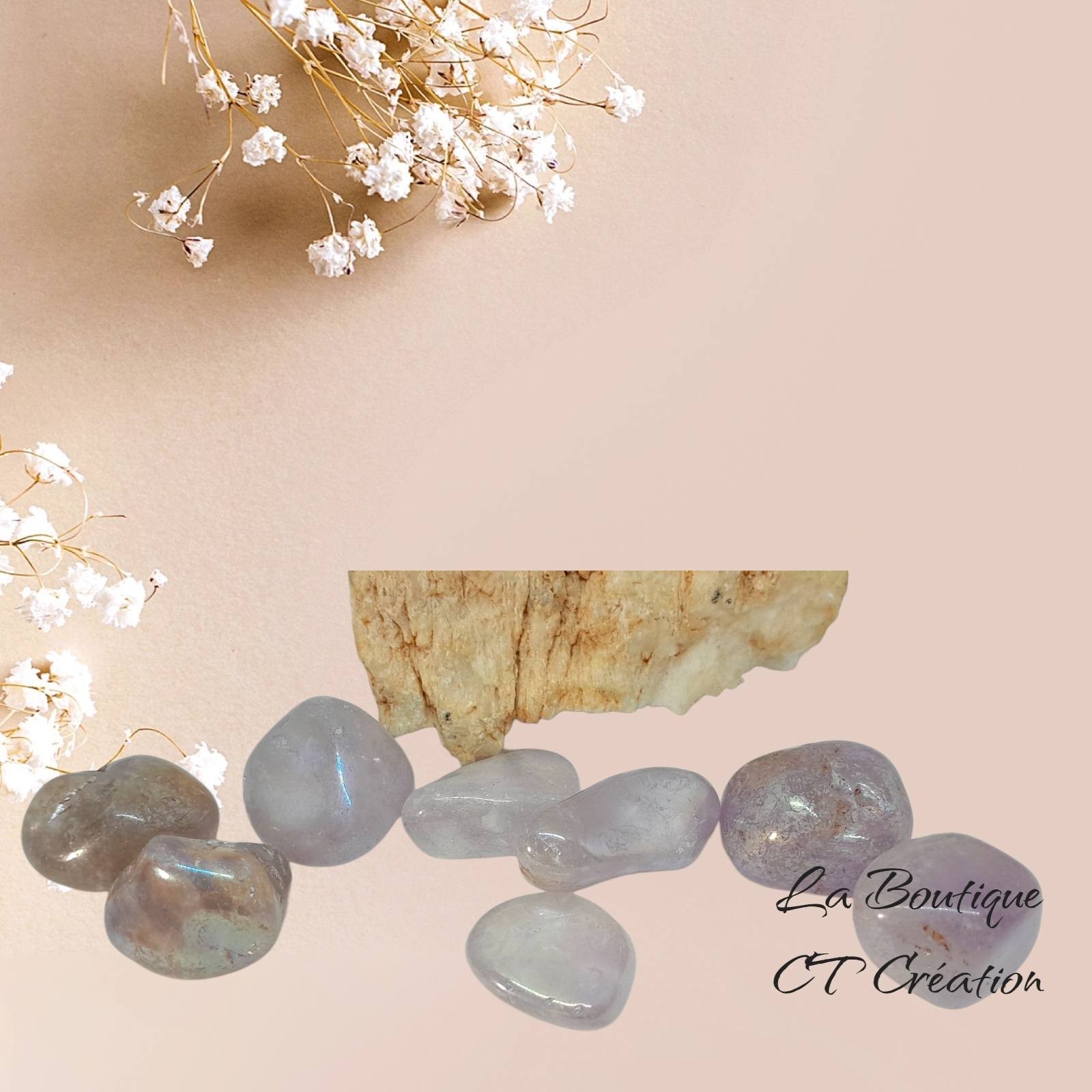 Pierres de taille différentes (entre 2cm et 3cm) vendues par pochette de 20g (soit environ 3 pierres roulées)