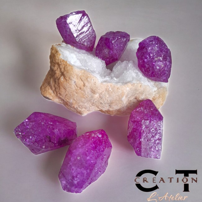 Pierres roulées décoratives à poser Cristal de Quartz Aqua Aura Fushia