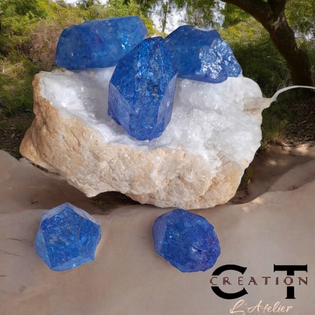 Pierres roulées décoratives à poser Cristal de Quartz Aqua Aura Bleu