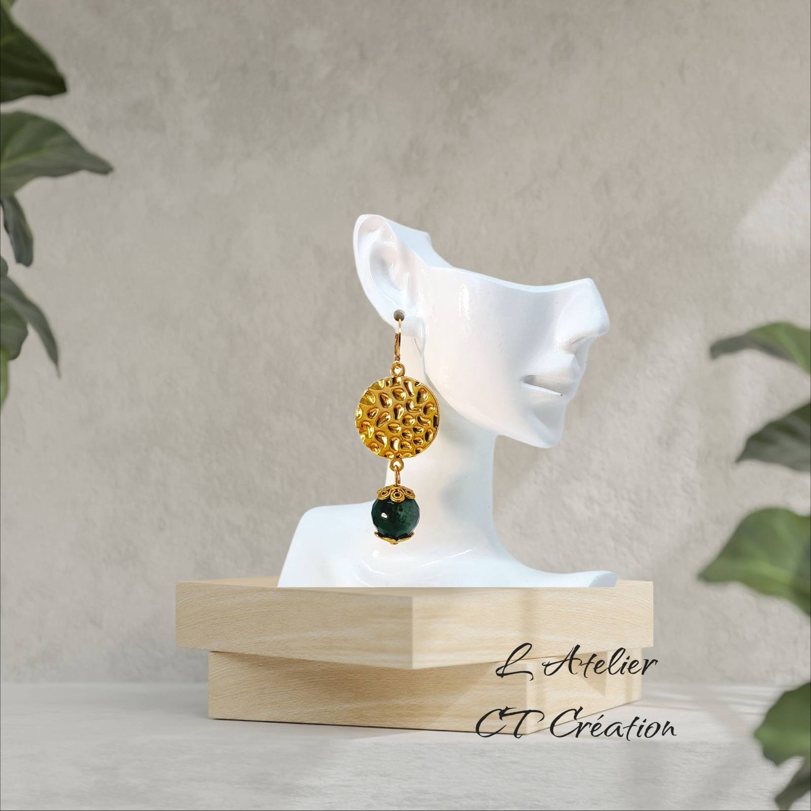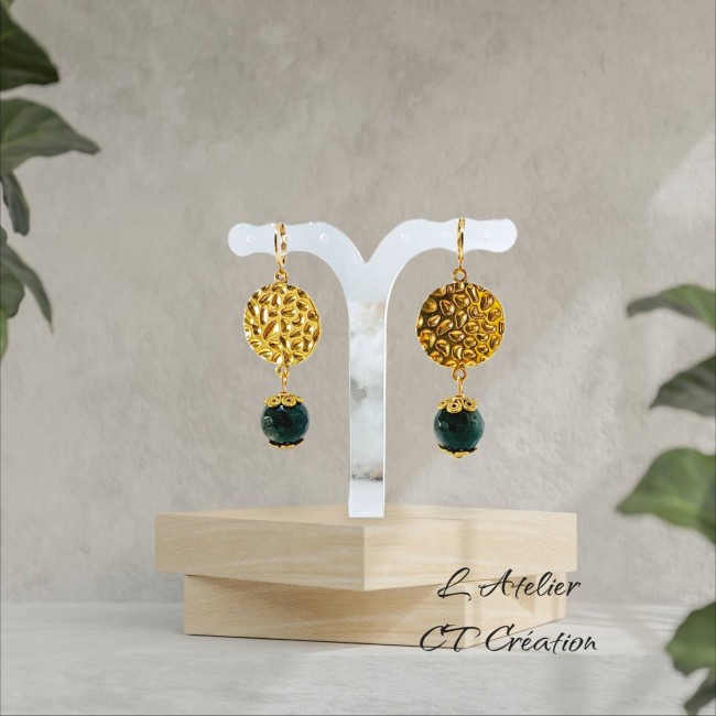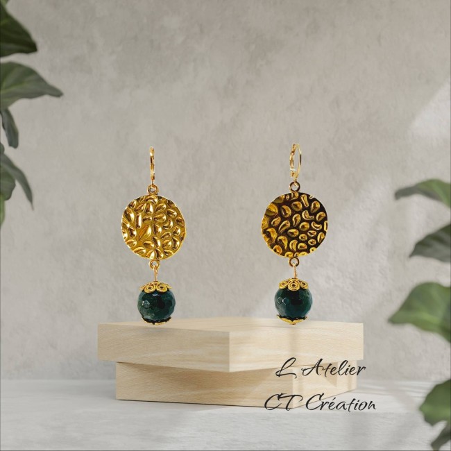 Pendentifs intercalaires acier doré martelé et perles d'Agate indienne à facettes 14mm