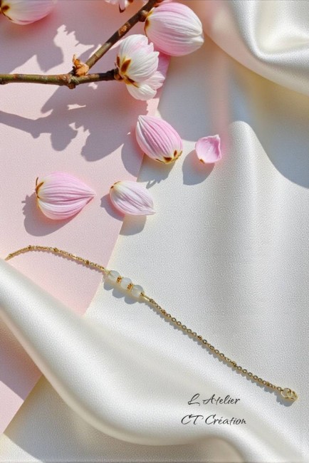 Magnifique Bracelet très fin et féminin réalisé avec des perles en pierre de lune blanche extra de 4mm