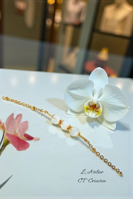 Magnifique Bracelet très fin et féminin réalisé avec des perles en pierre de lune blanche extra de 4mm