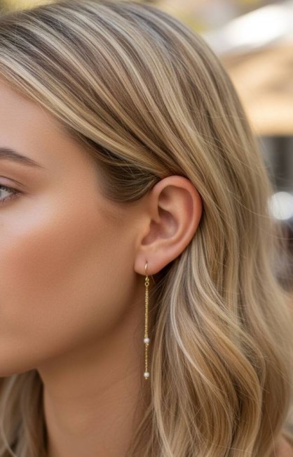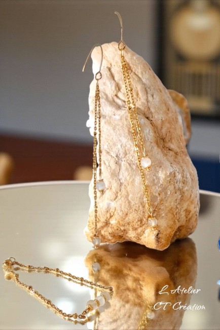 Magnifiques Boucles d'Oreilles longs pendentifs réalisés avec des perles en pierre de lune blanche extra de 4mm