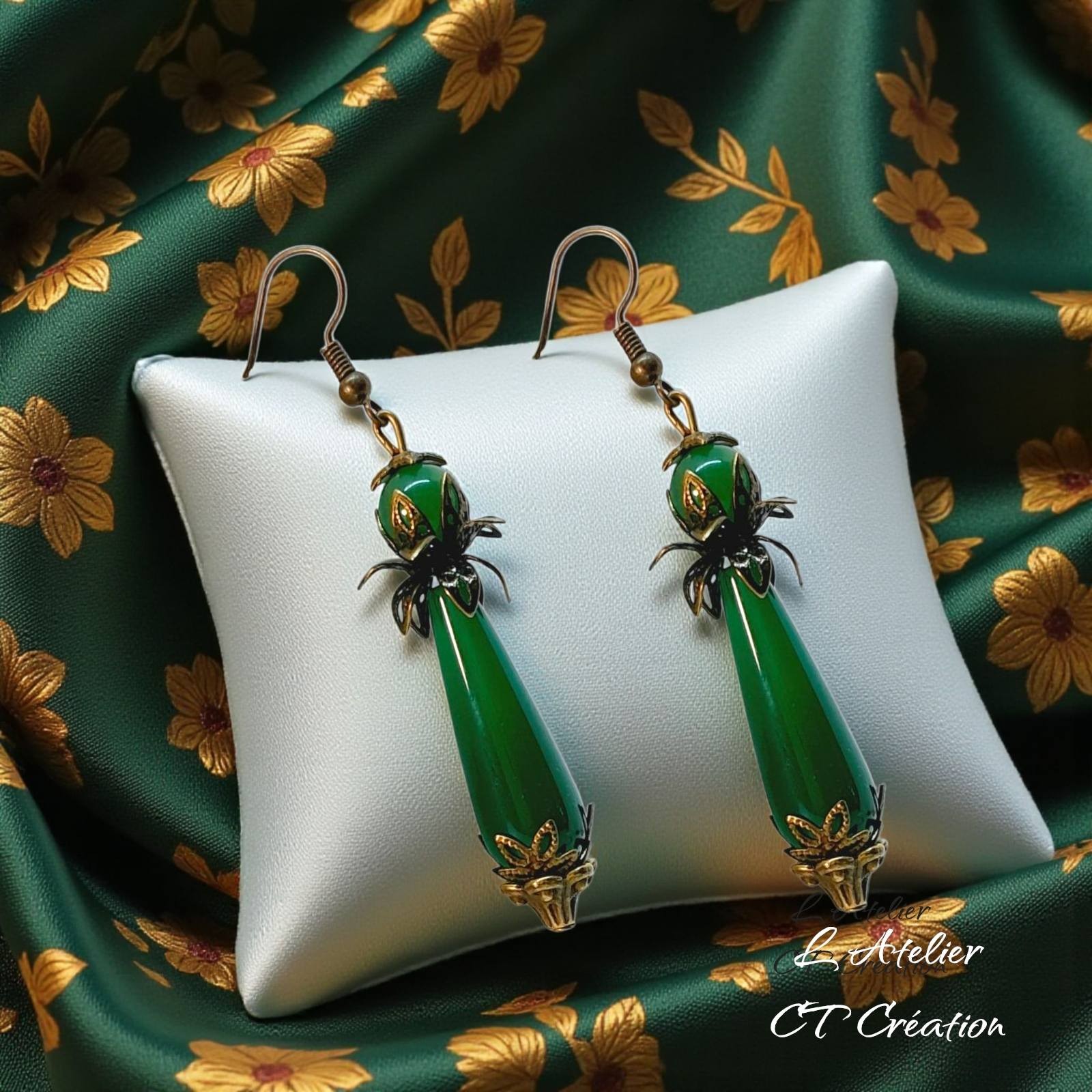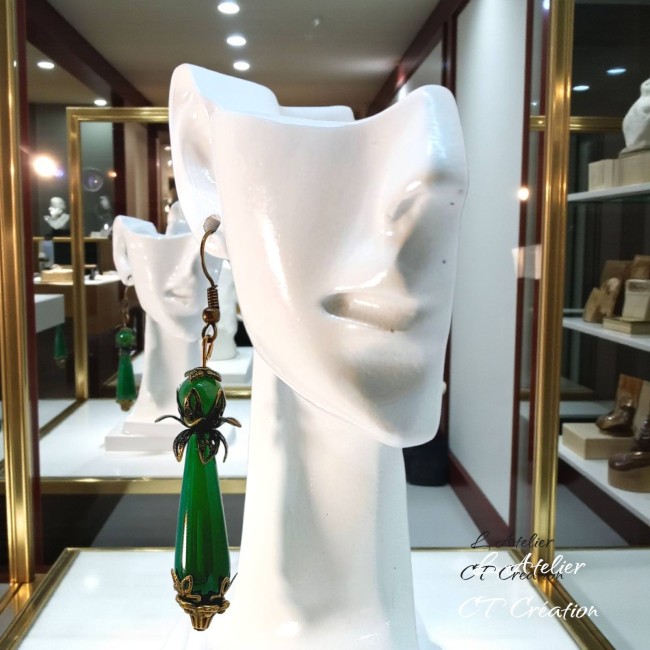 Magnifiques Boucles d’Oreilles pendentifs gouttes en Agate verte extra