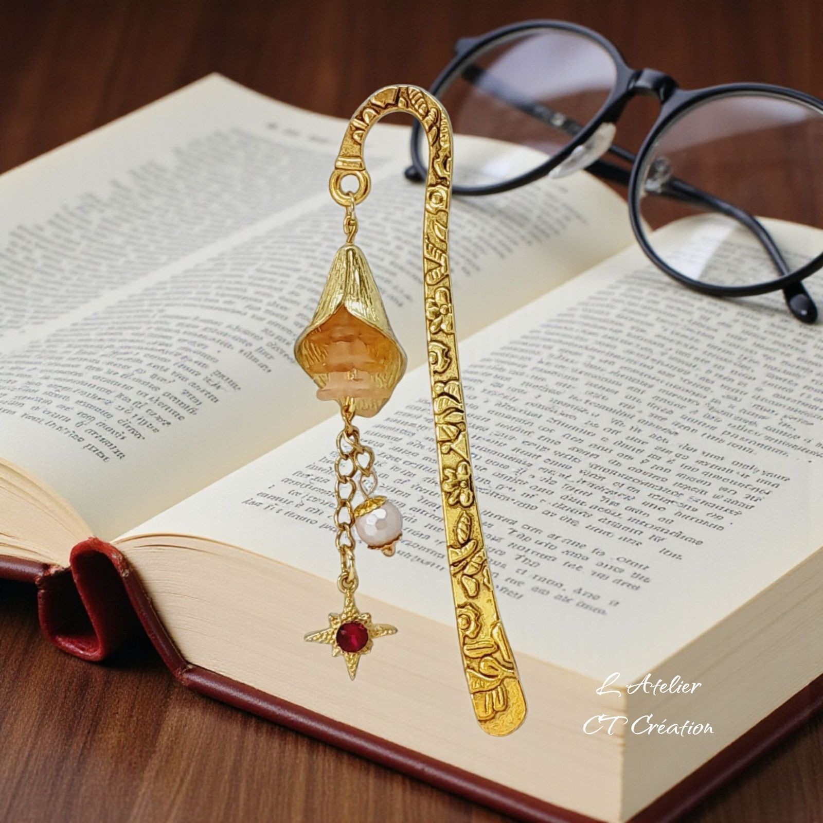 Dimension : 8cm (marque page) - 6cm (pendentif floral)