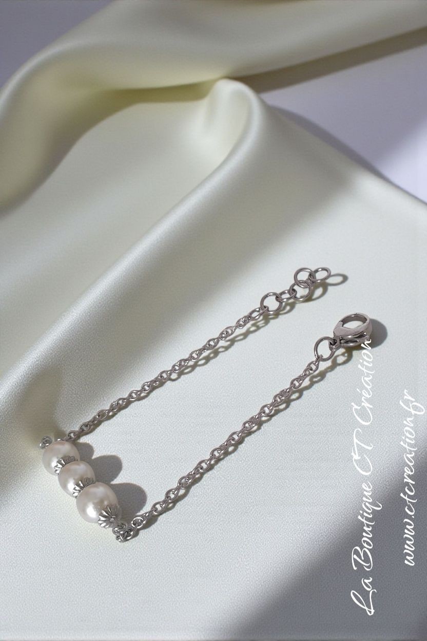 Bracelet réalisé sur commande avec perles en coquille de nacre sur chaine acier argenté