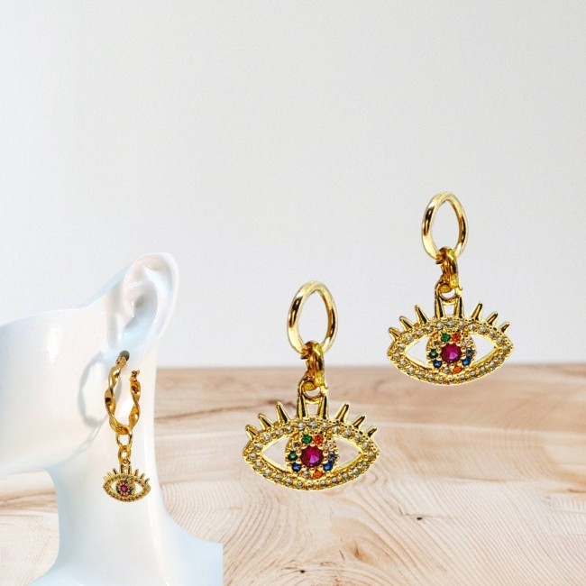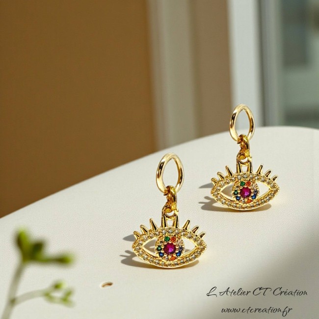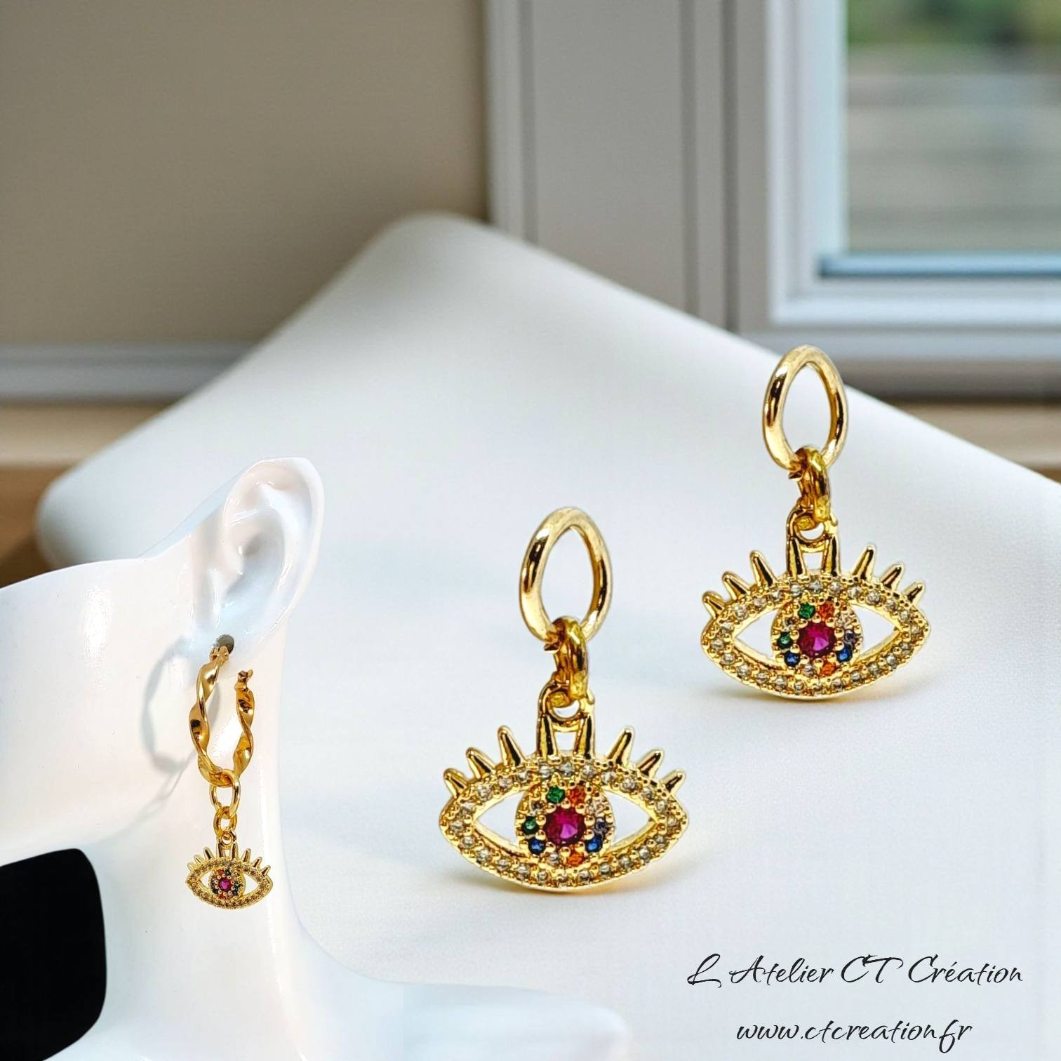 2 pendentifs Oeil de Protection zircons (créoles vendues séparément)