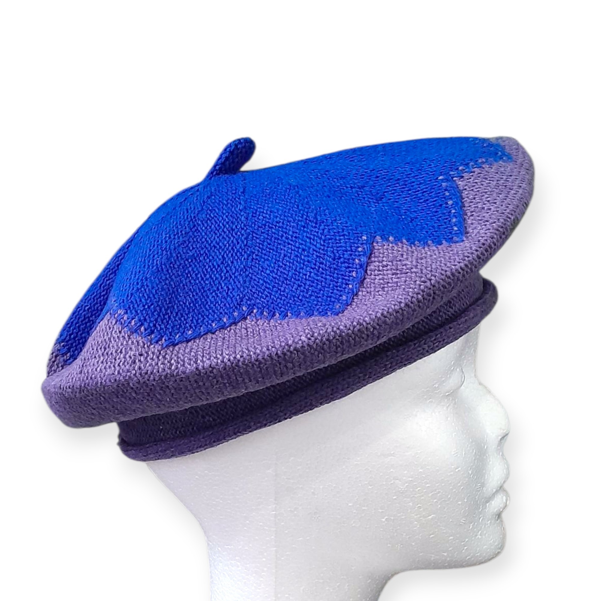 Adoptez un style unique avec ce magnifique Béret bicolore bleu, parfait pour ajouter une touche chic et artistique à vos tenues. Sa forme classique associée à un jeu de couleurs moderne en fait un accessoire à la fois original et facile à porter.