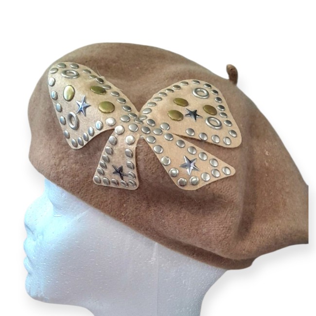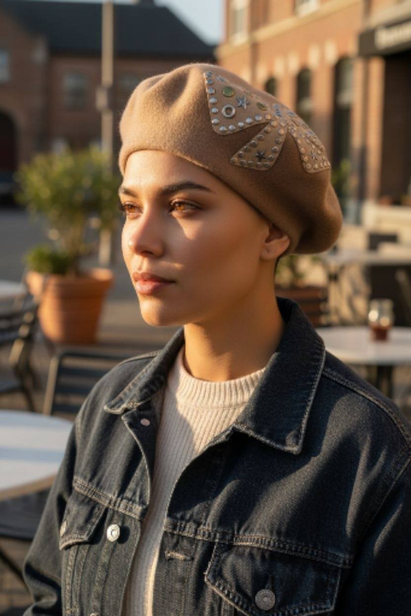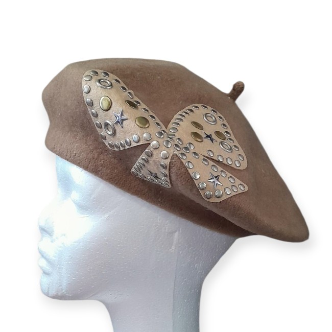 Apportez une touche d’élégance à vos tenues avec ce superbe Béret brun décoré d’un nœud clouté. Sa couleur chaude et son design raffiné en font un accessoire à la fois tendance et intemporel. Parfait pour celles qui aiment les détails uniques qui font toute la différence.