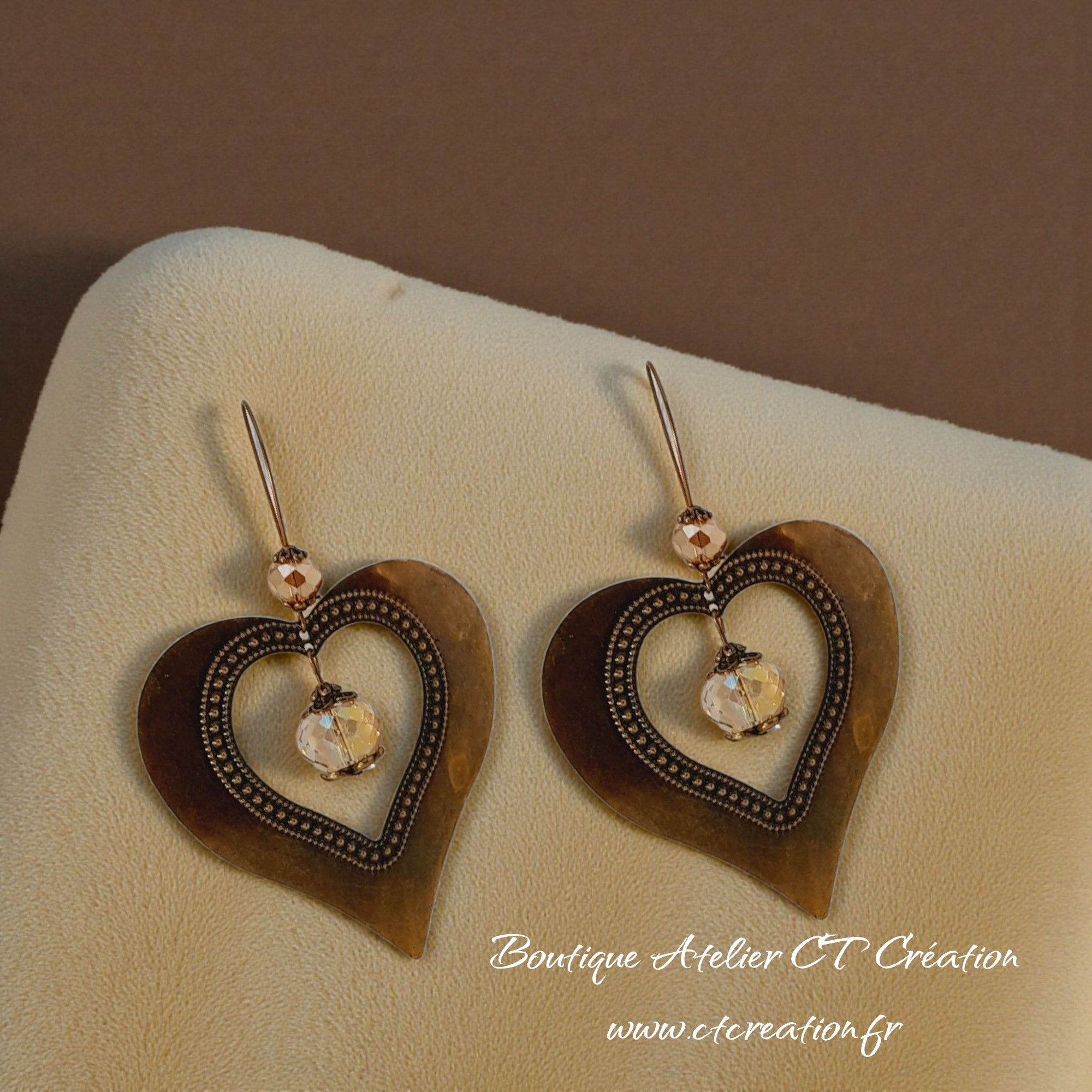 Superbes Boucles d’oreilles “Cœur en Folie” – Des éclats d’âme et de lumière