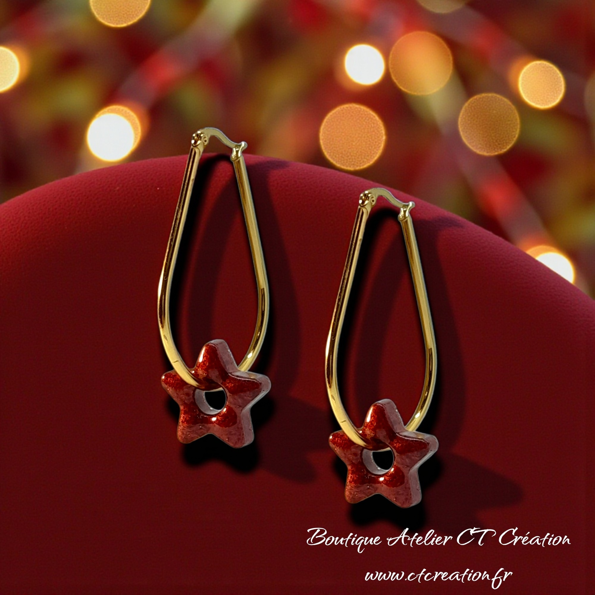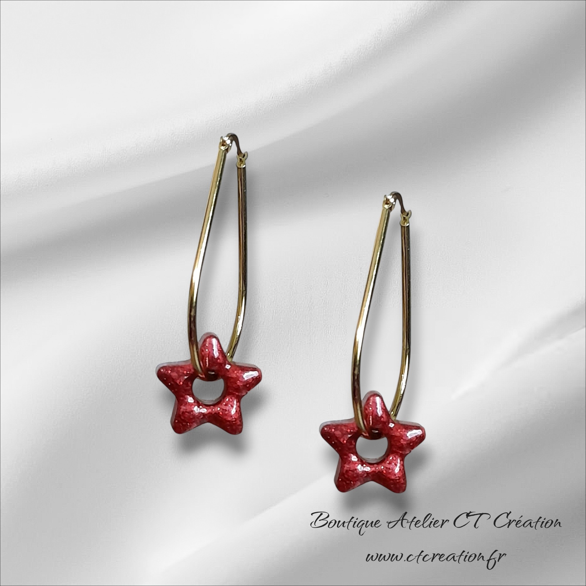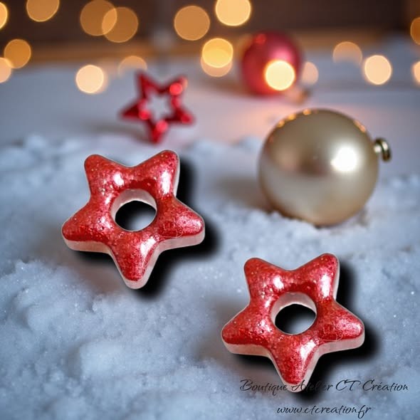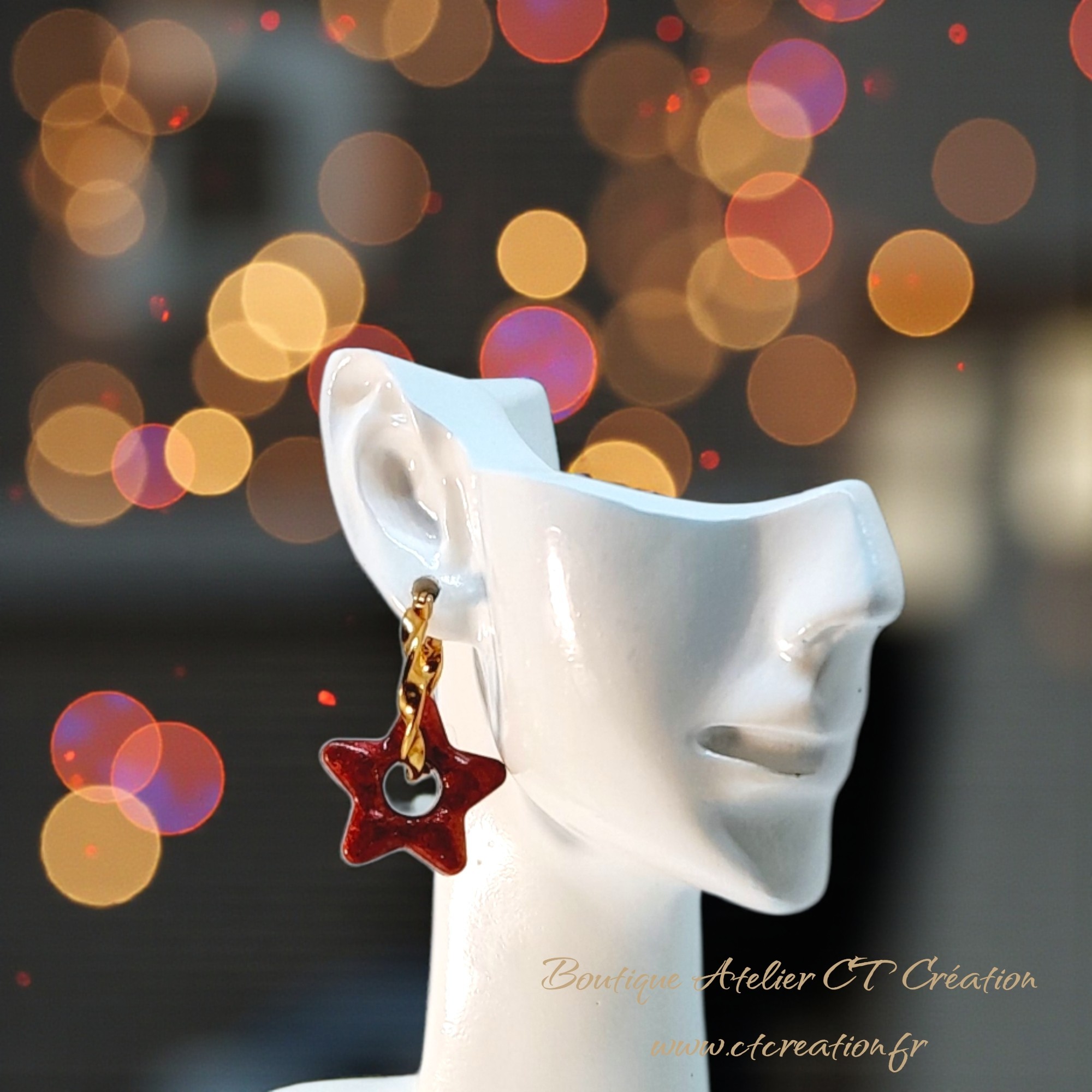 2 superbes pampilles charm's petites Etoiles 20.5mm réalisées entièrement en Atelier à partir de résine et pigments naturels et poudre pailletée