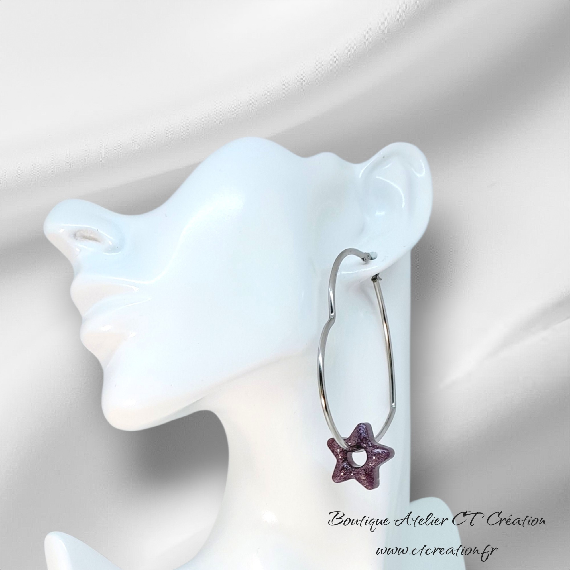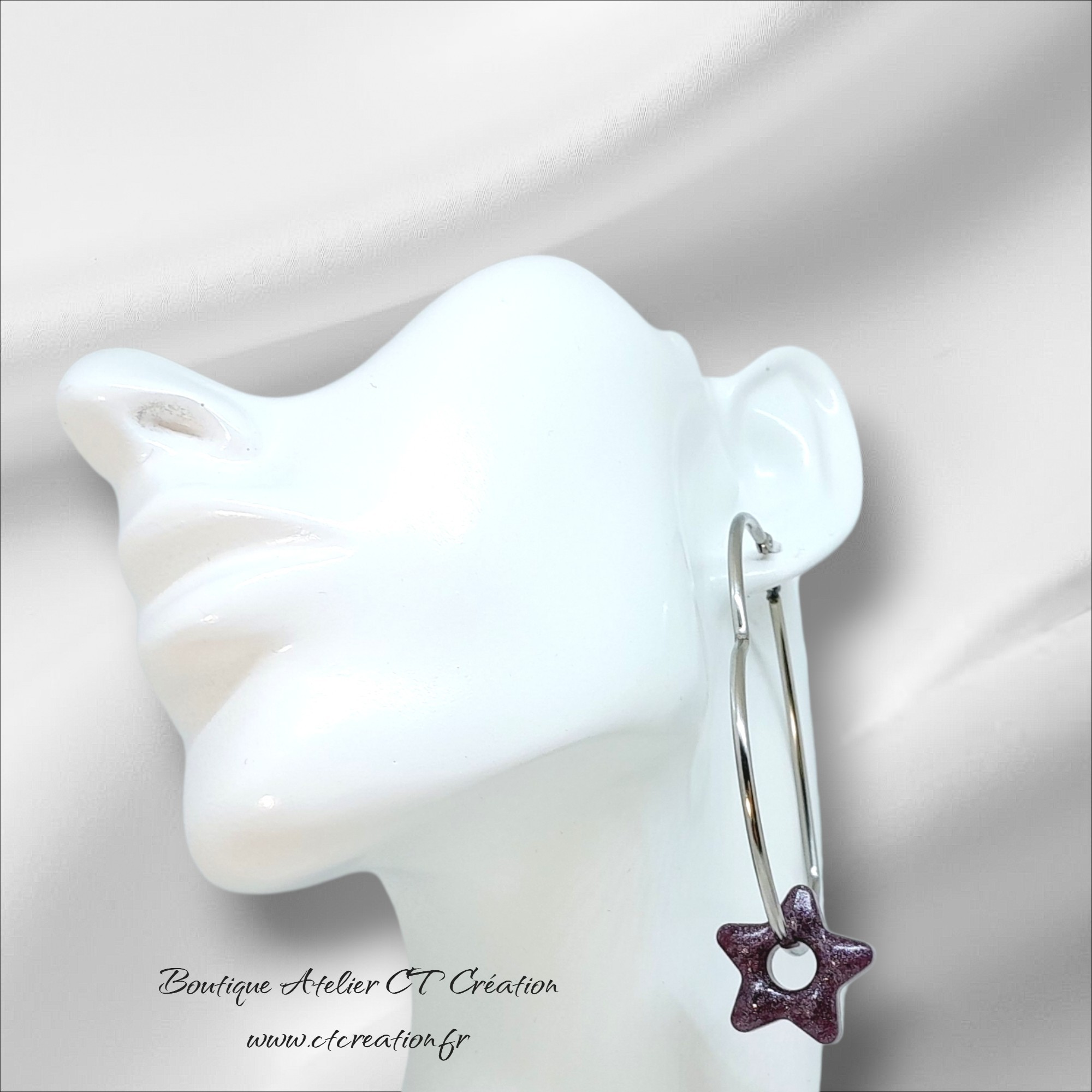 2 superbes pampilles charm's petites Etoiles 20.5mm réalisées entièrement en Atelier à partir de résine et pigments naturels et poudre pailletée