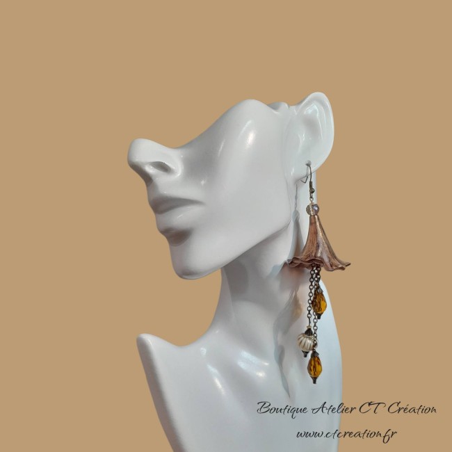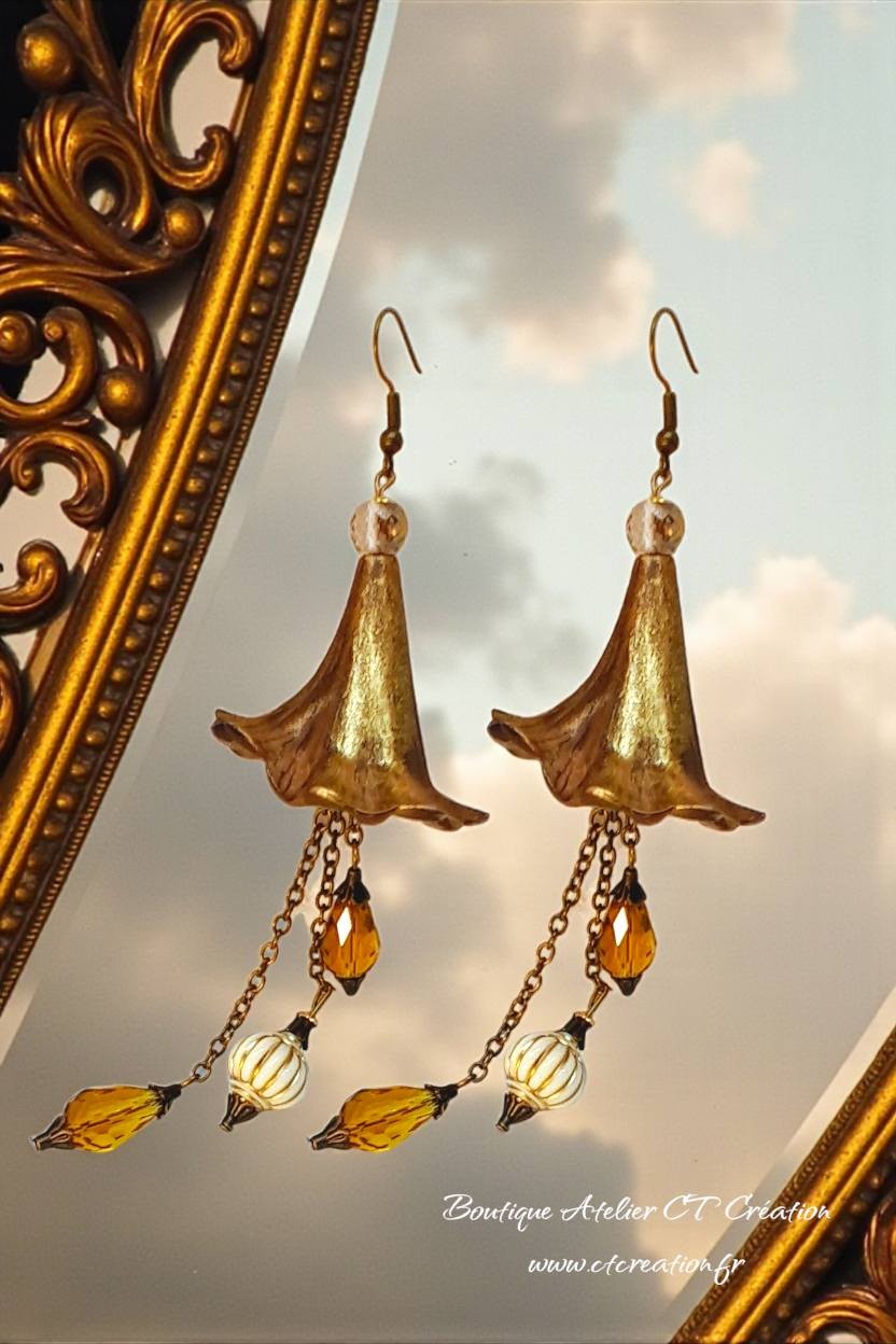 Ces boucles d’oreilles uniques évoquent un univers poétique, entre nature et magie — parfaites pour compléter une tenue élégante, une tenue de fête ou bien bohème