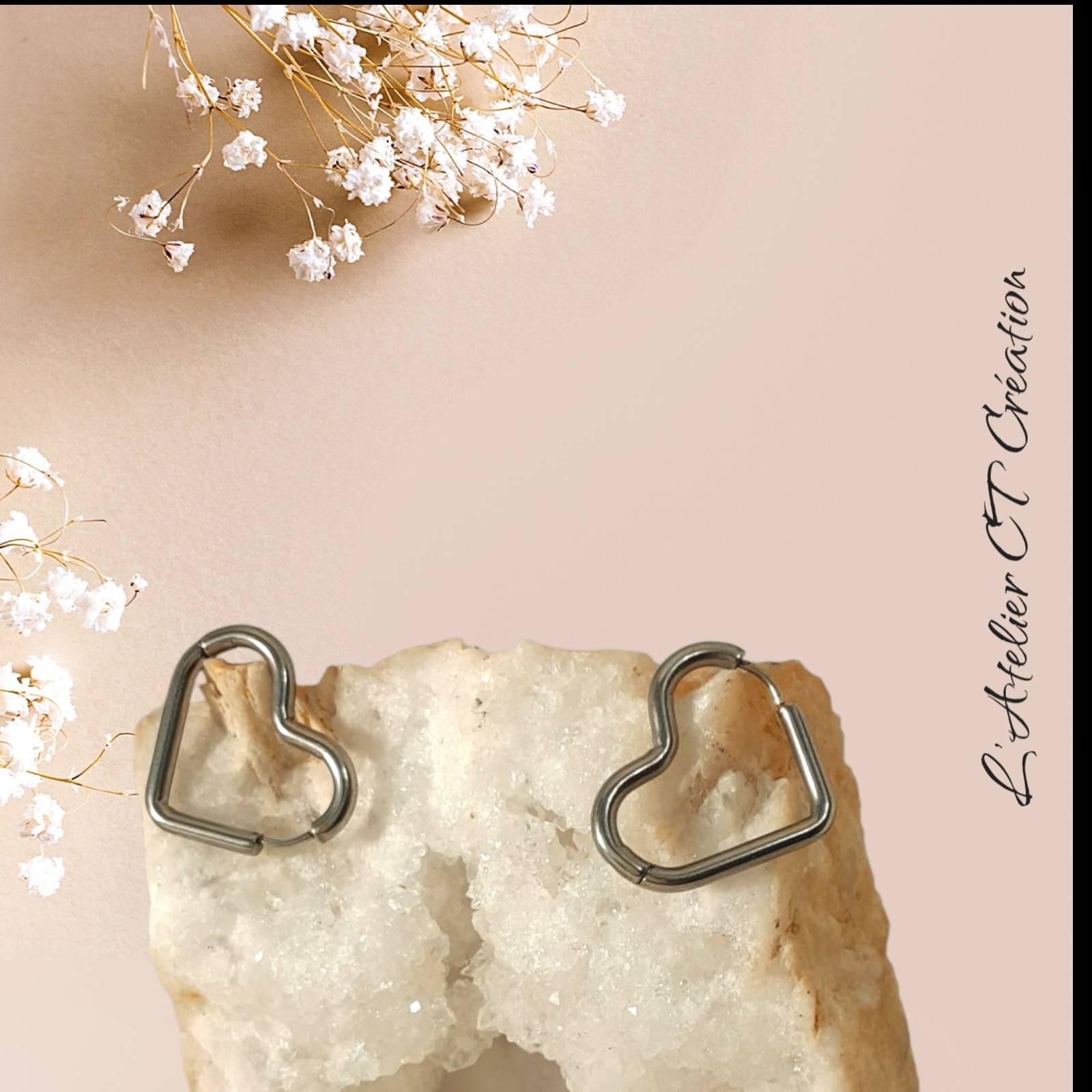 Paire de Créoles forme Coeur très féminines, à porter seule ou avec nos perles ou pendentifs