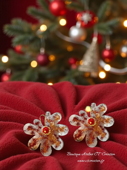 Entièrement fabriquées en atelier, ces pièces sont uniques et ornées de paillettes rouge et or étincelantes, créant un effet lumineux et raffiné.