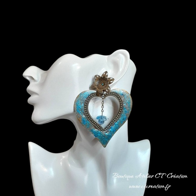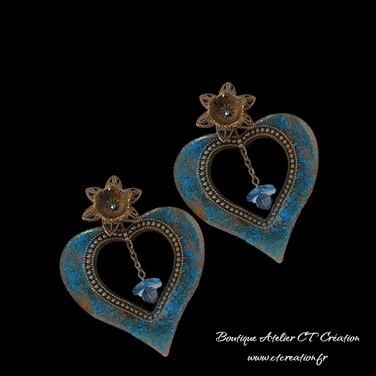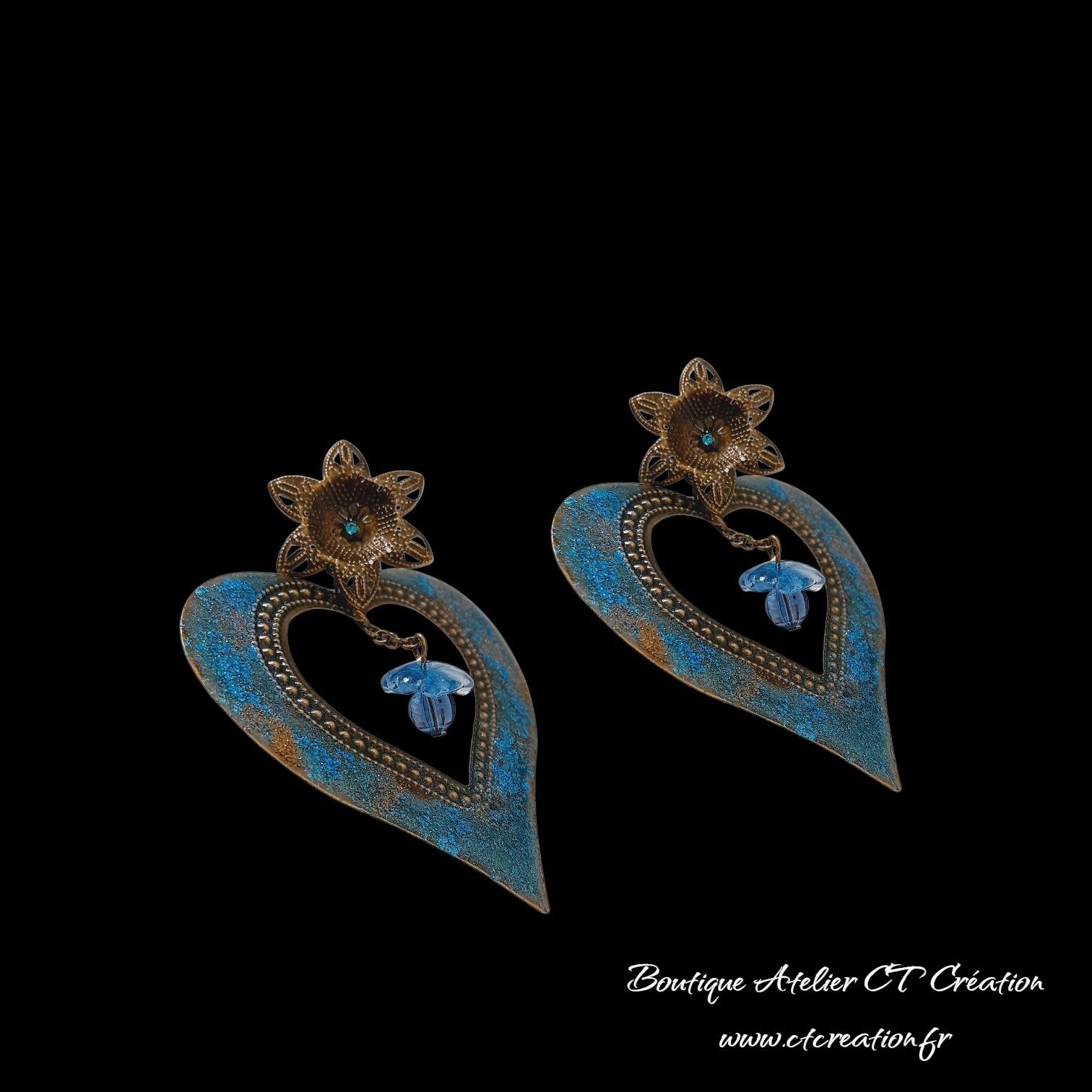 Superbes boucles d'oreilles en métal laiton bronze sont très légères à porter malgré leurs tailles
