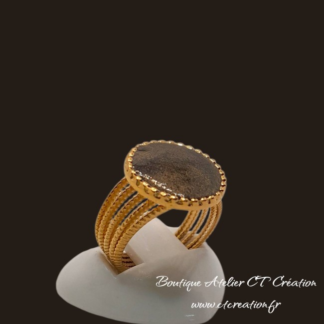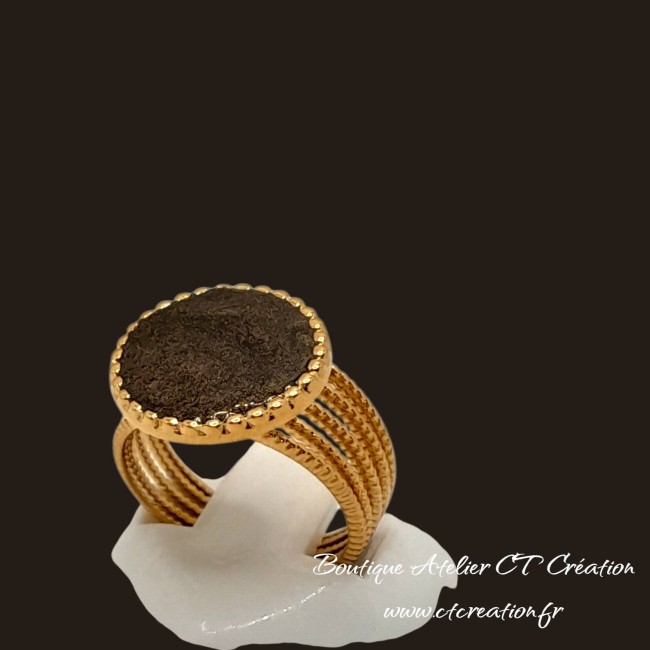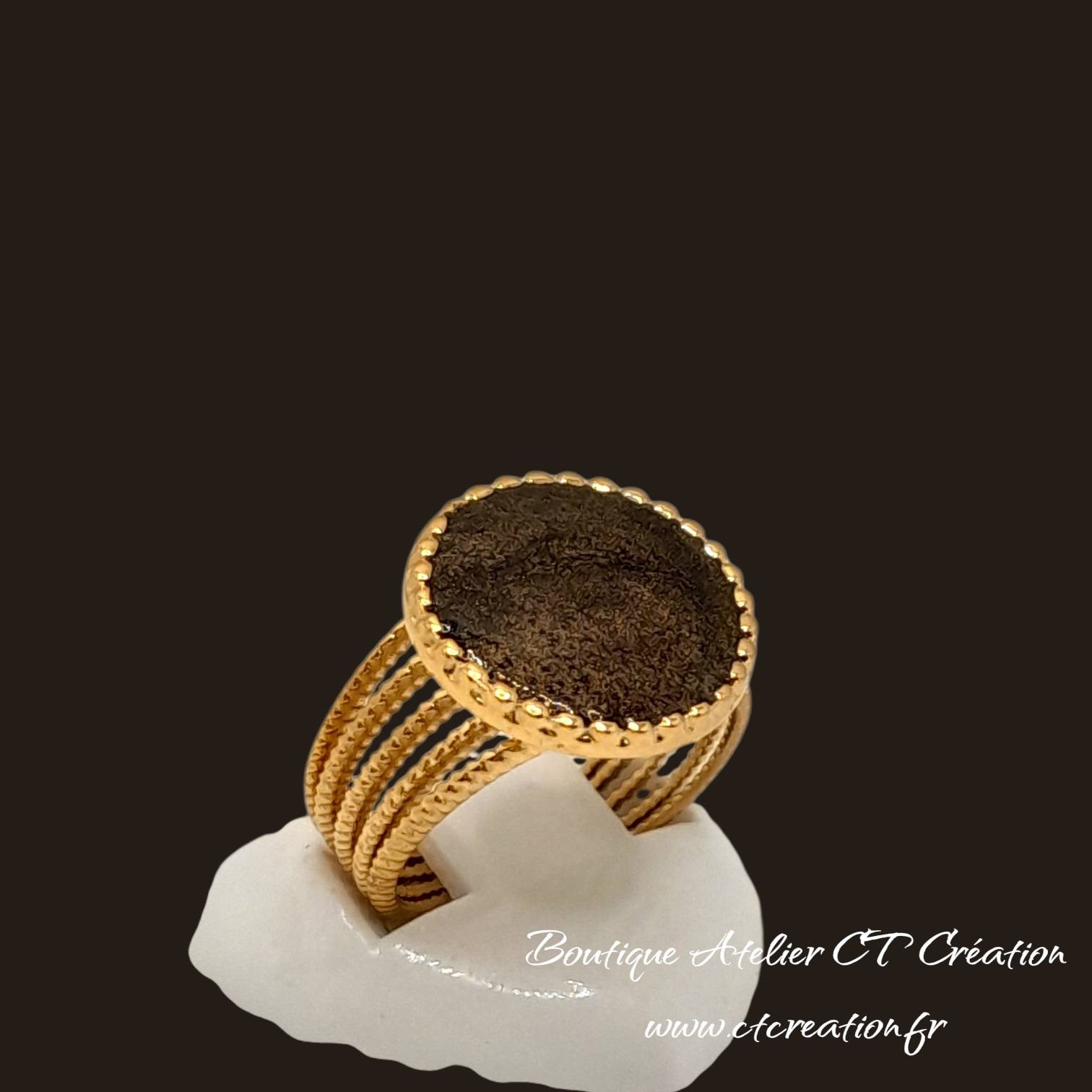 Magnifique Bague ronde 15mm en acier doré anneau 5 fils