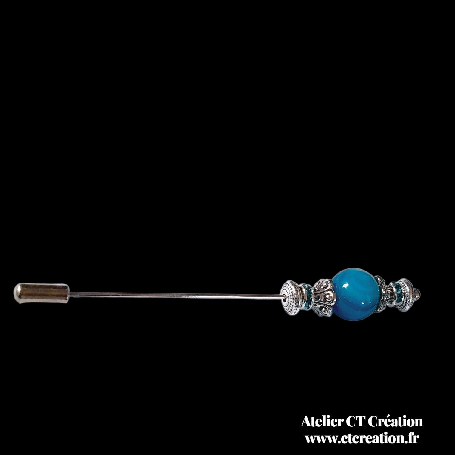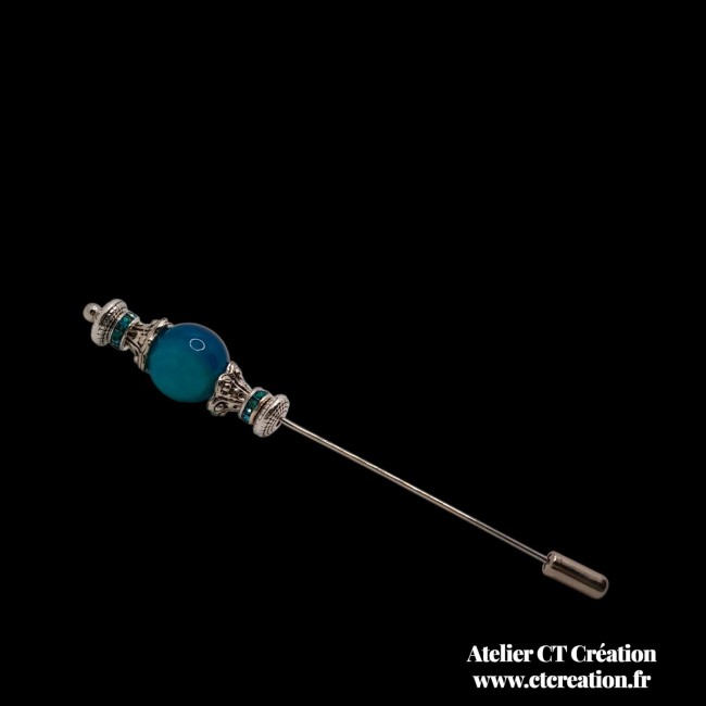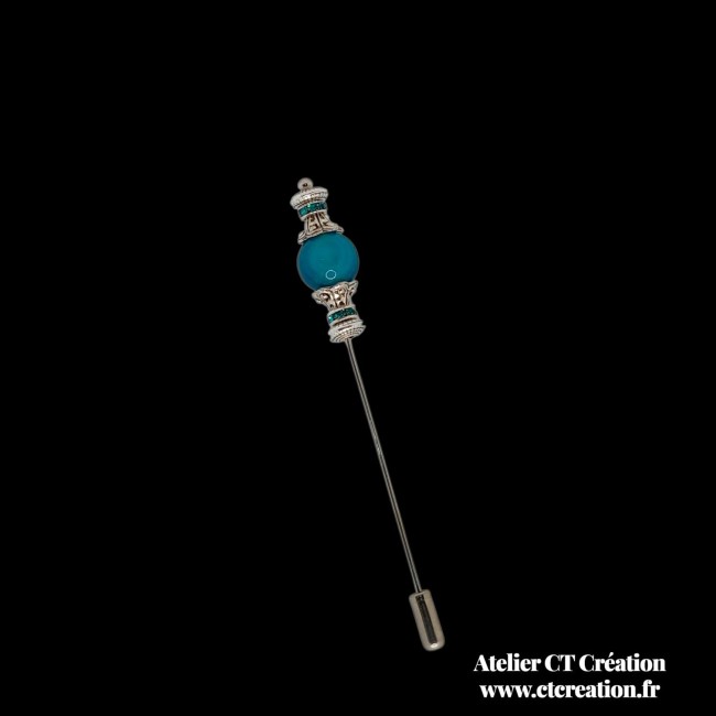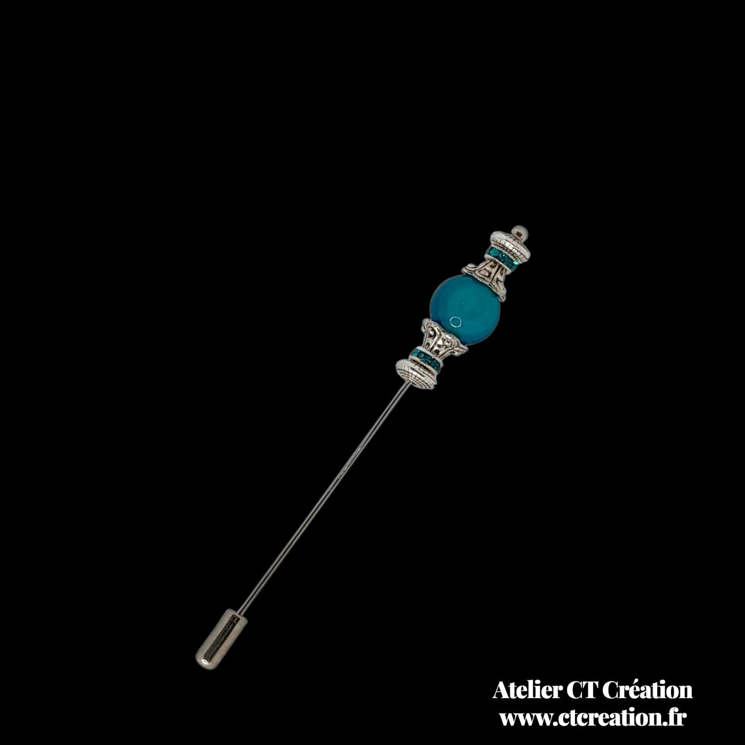 Apportez une touche d’élégance et de raffinement à vos tenues avec cette superbe fibule réalisée avec une perle d'Agate Verte 10mm, ornée de perles rondelles strass en cristal turquoise, coupelles inspirée d'un style vintage baroque