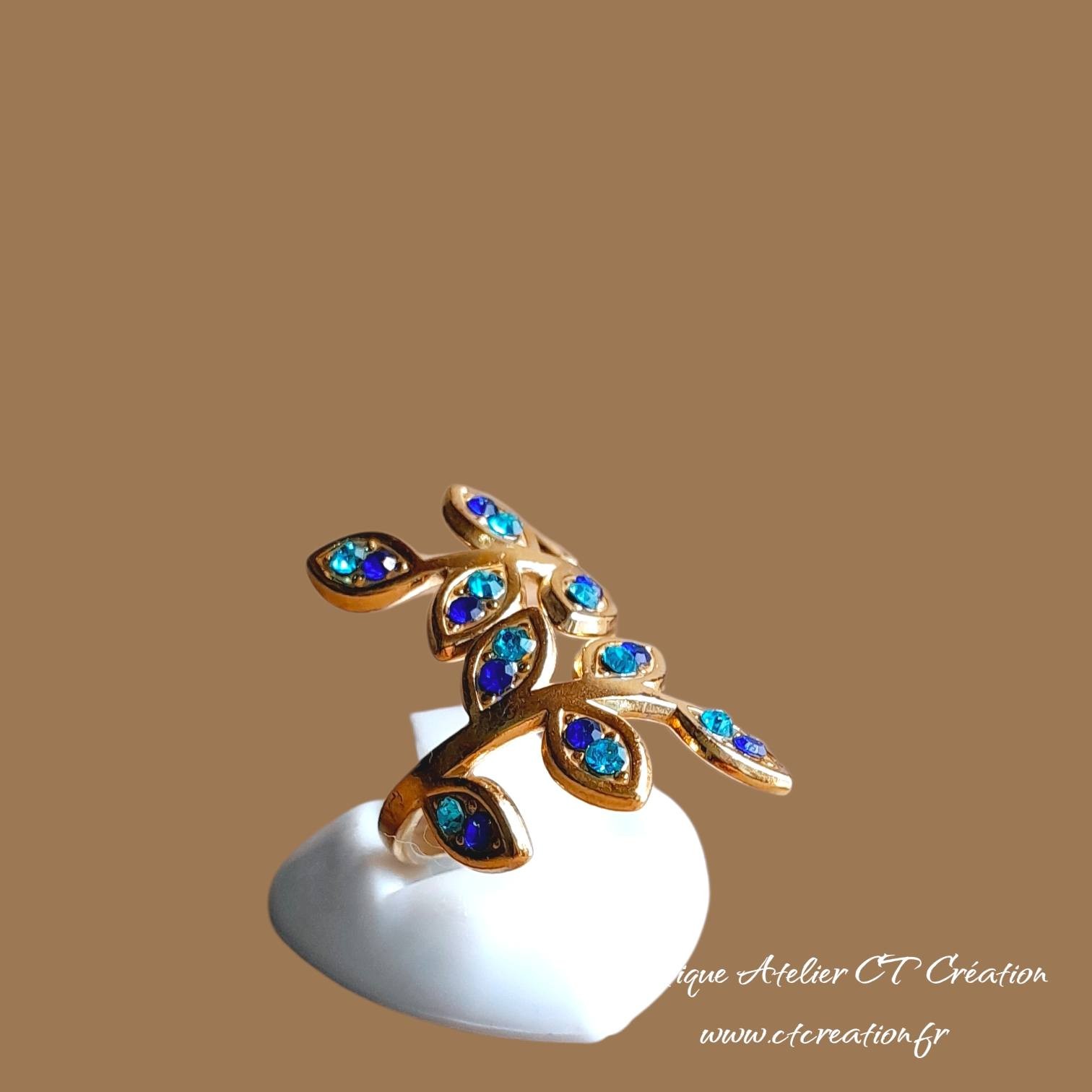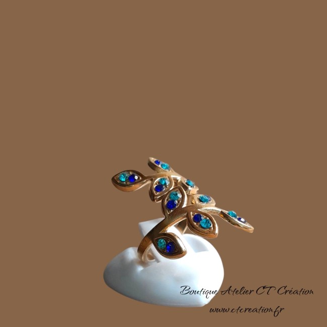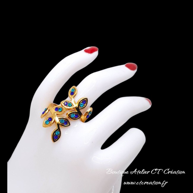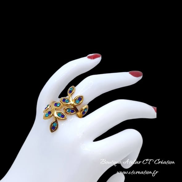 Anneau réglable grâce à l'ouverture des 2 feuilles (convient pour une taille de doigt de 52 à 60)