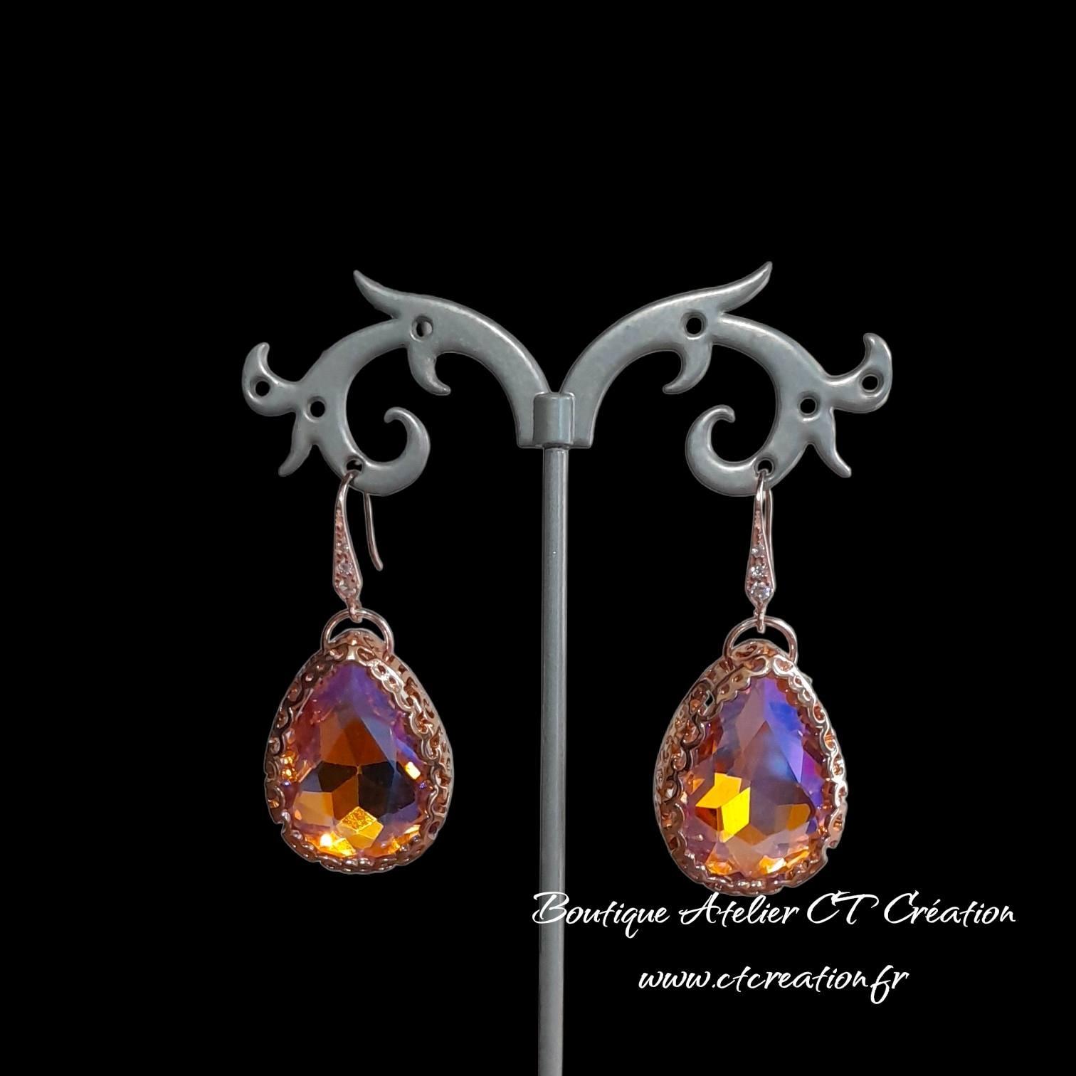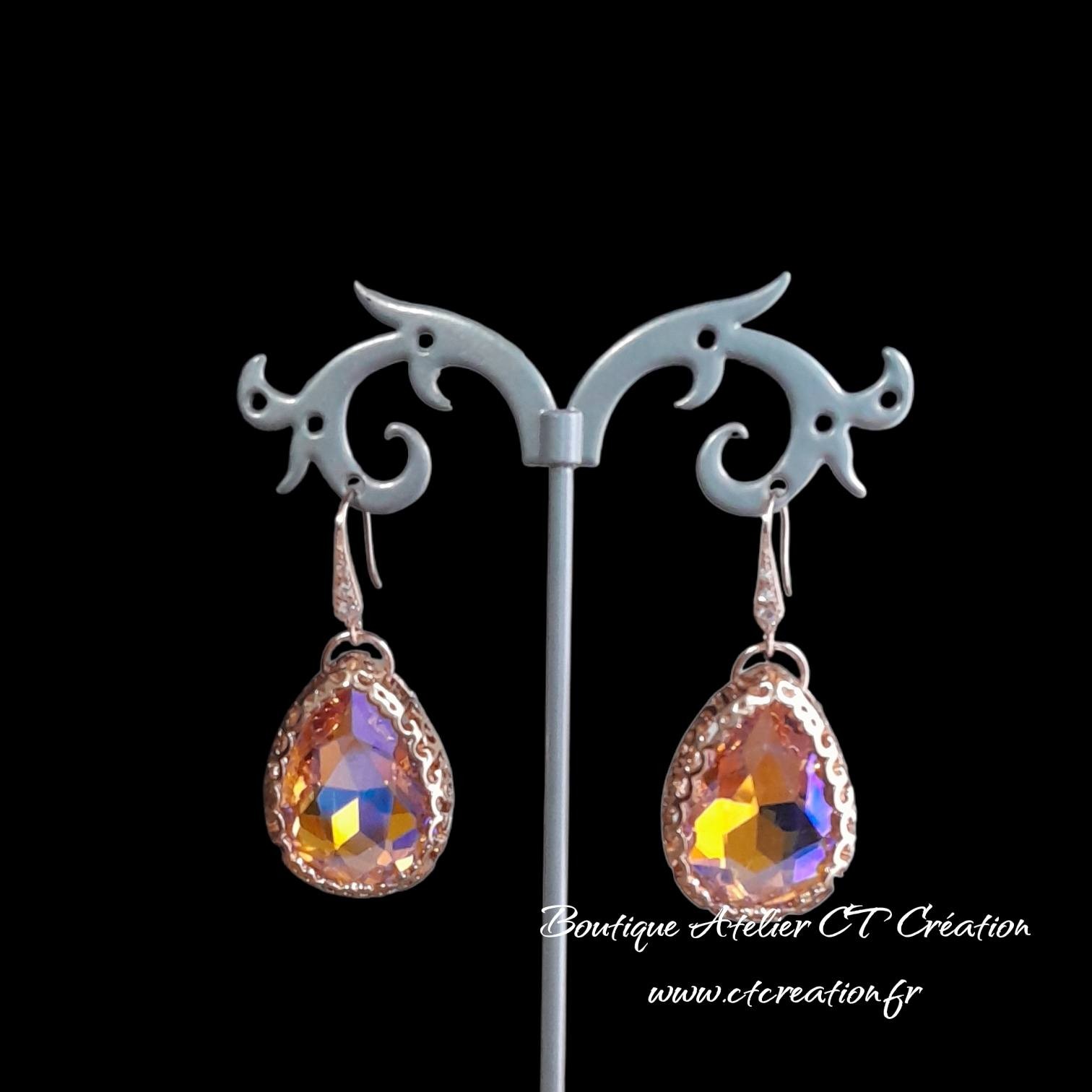 Magnifiques & féminines, Boucles d'oreilles cabochons en verre à facettes Aurore Boréale pêche