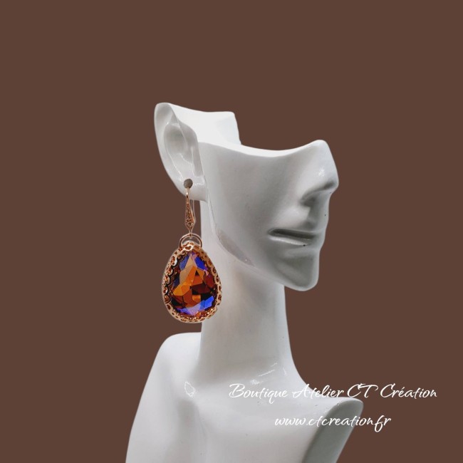 Les tiges d'oreilles sont en laiton doré rosé (sans nickel, sans plomb, sans cadmium)