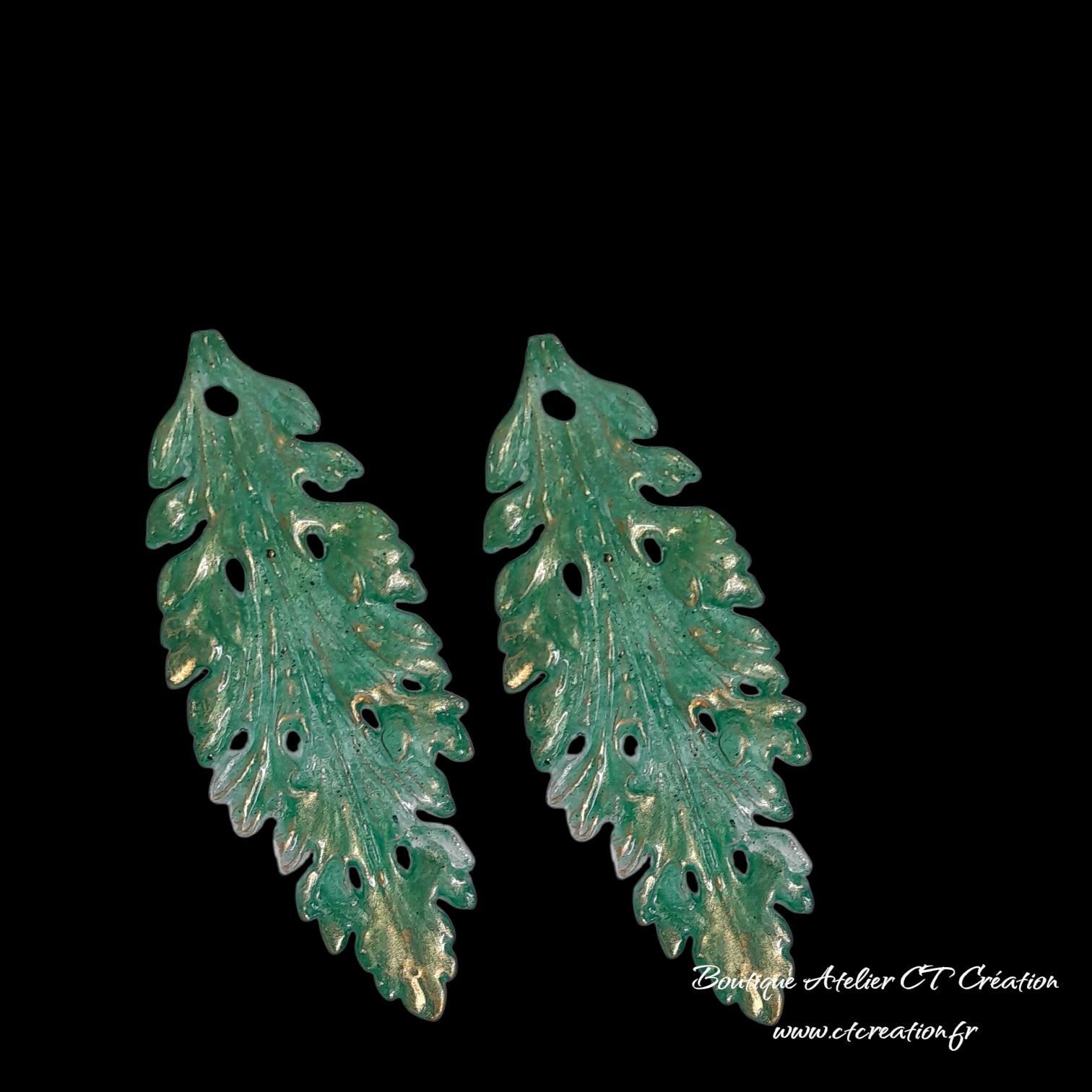 2 Superbes Feuilles réalisées entièrement en Atelier à partir de résine et pigments naturels et patine dorée