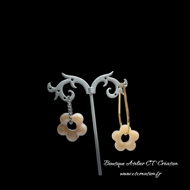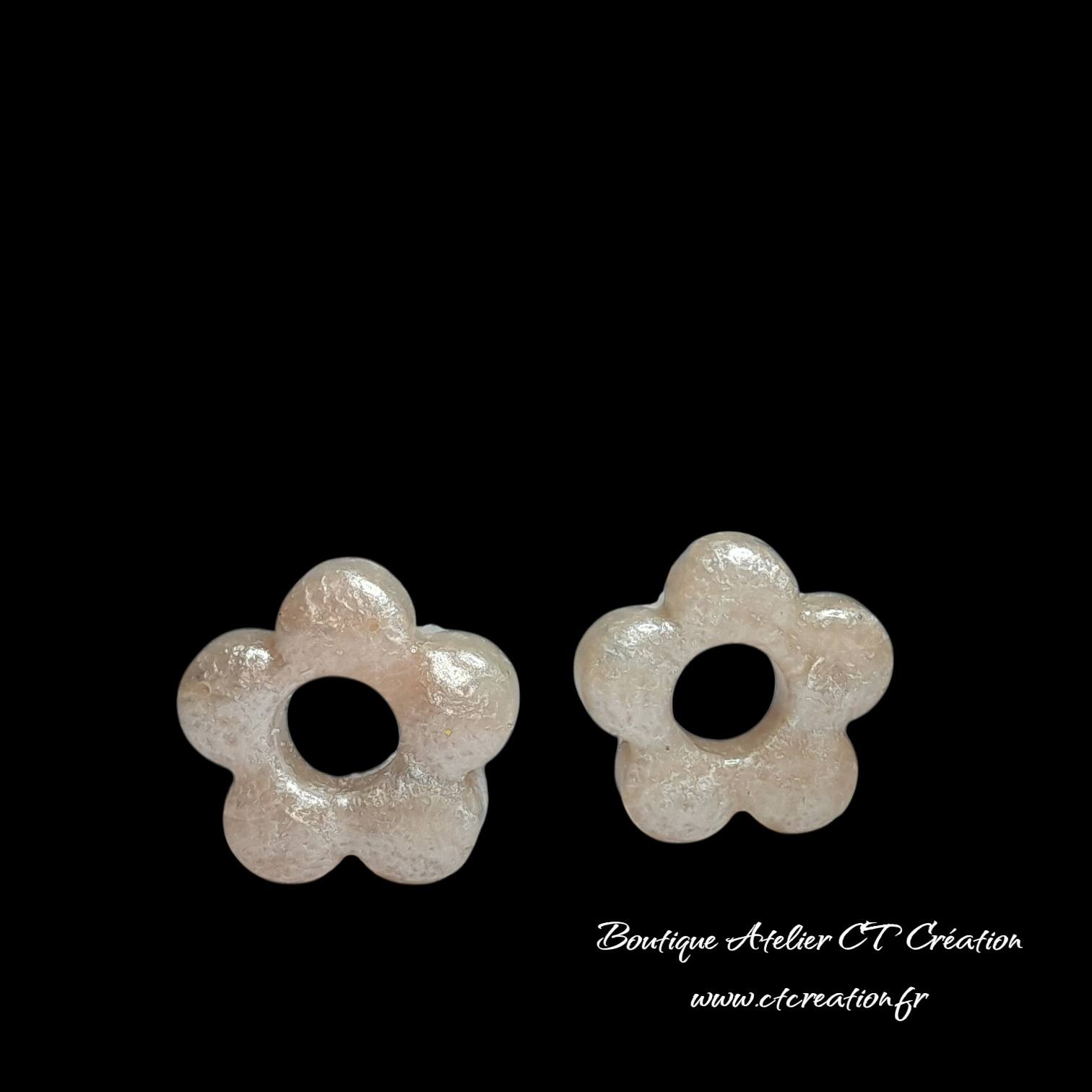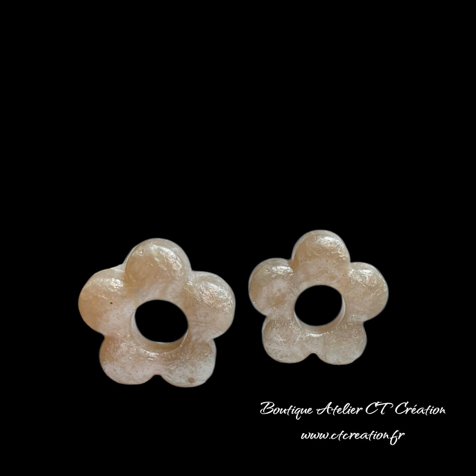 2 Superbes pampilles pendentifs Fleurs réalisées entièrement en Atelier à partir de résine et pigments naturels pailletés
