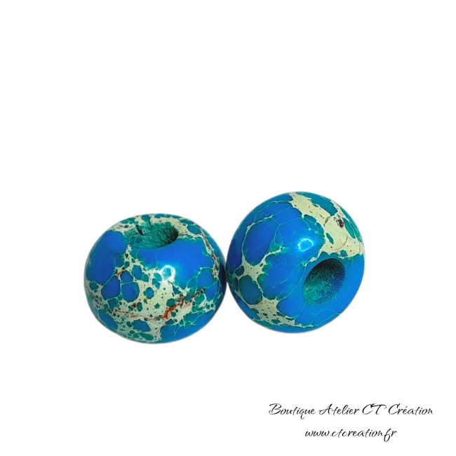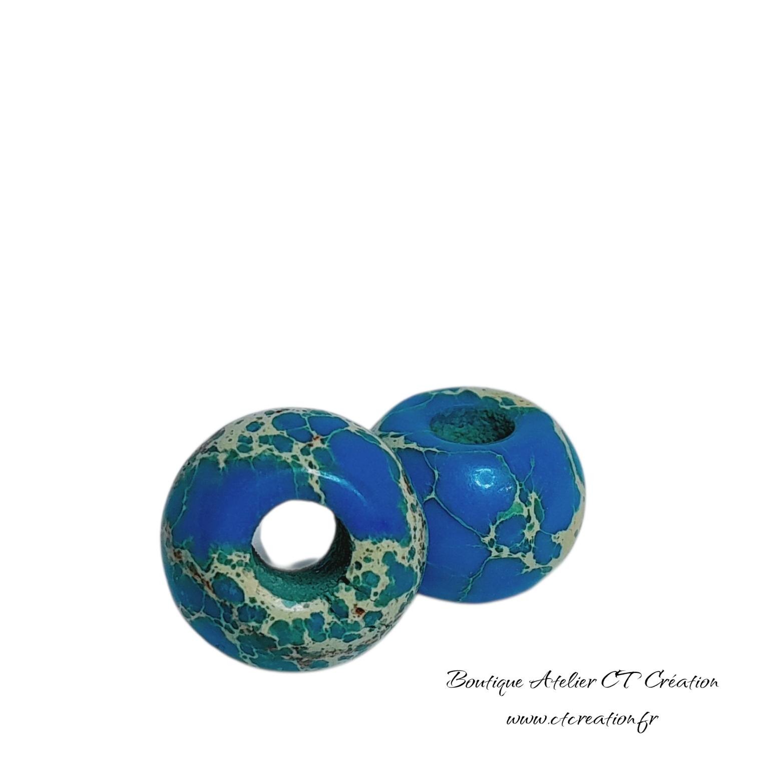 2 Perles gemme à gros trous en Jaspe impérial de qualité extra