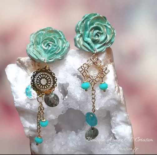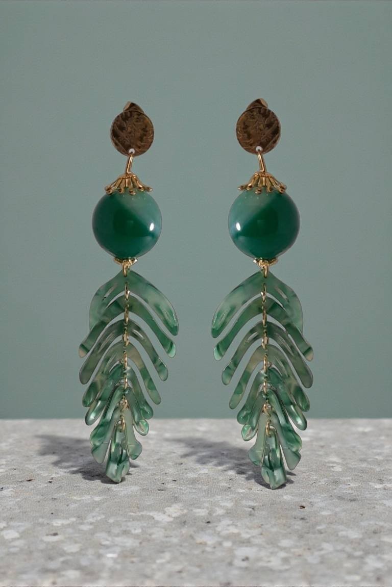 Magnifiques Boucles d’Oreilles pendentifs Feuilles en Acétate de cellulose