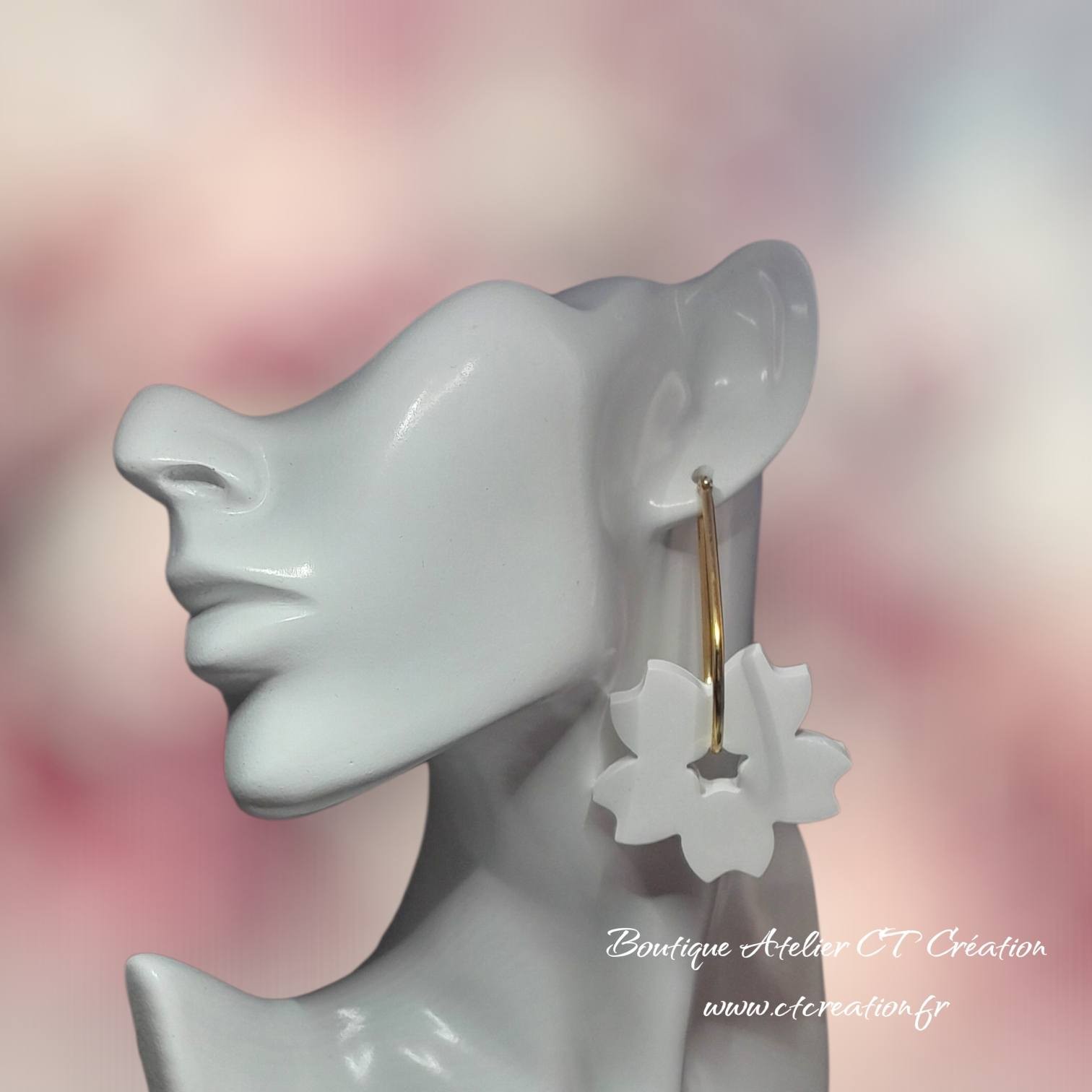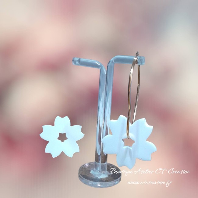 2 Superbes pampilles pendentifs grandes fleurs réalisées entièrement en Atelier à partir de céramique