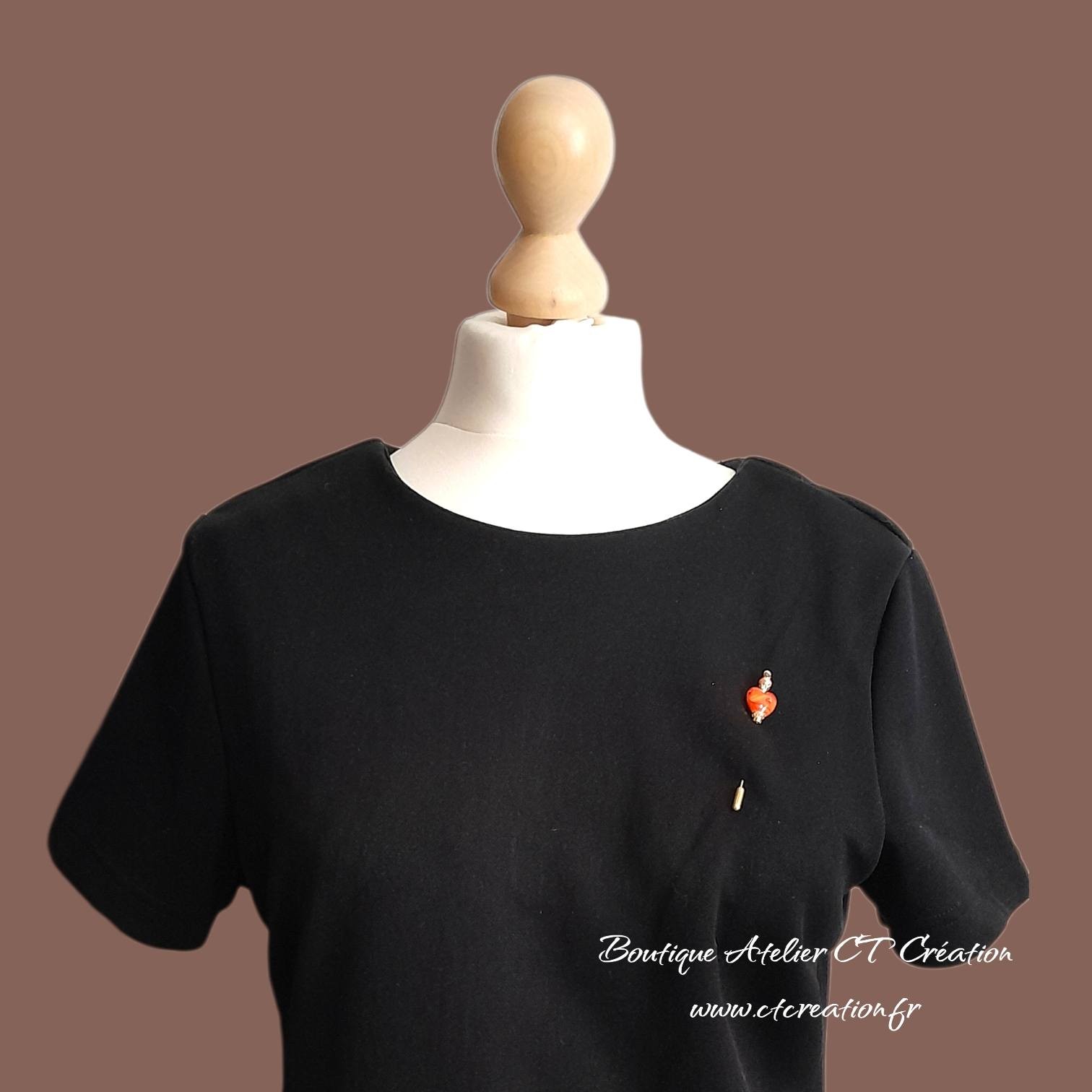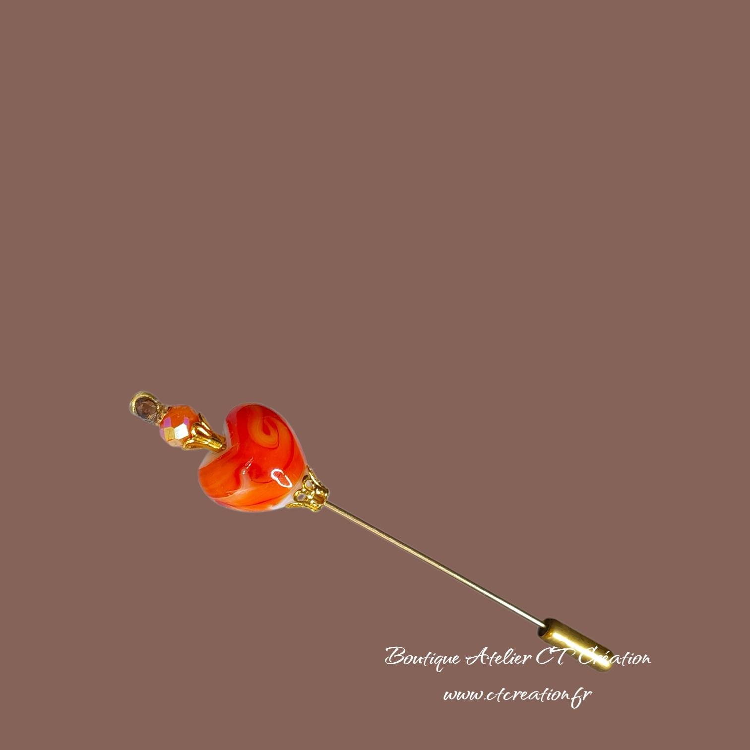 Apportez une touche d’élégance et d’originalité à vos tenues avec cette fibule artisanale unique, réalisée en atelier avec une perle Coeur en verre de Murano, perle verre à facettes oranges, strass en cristal autrichien pour la finition supérieure