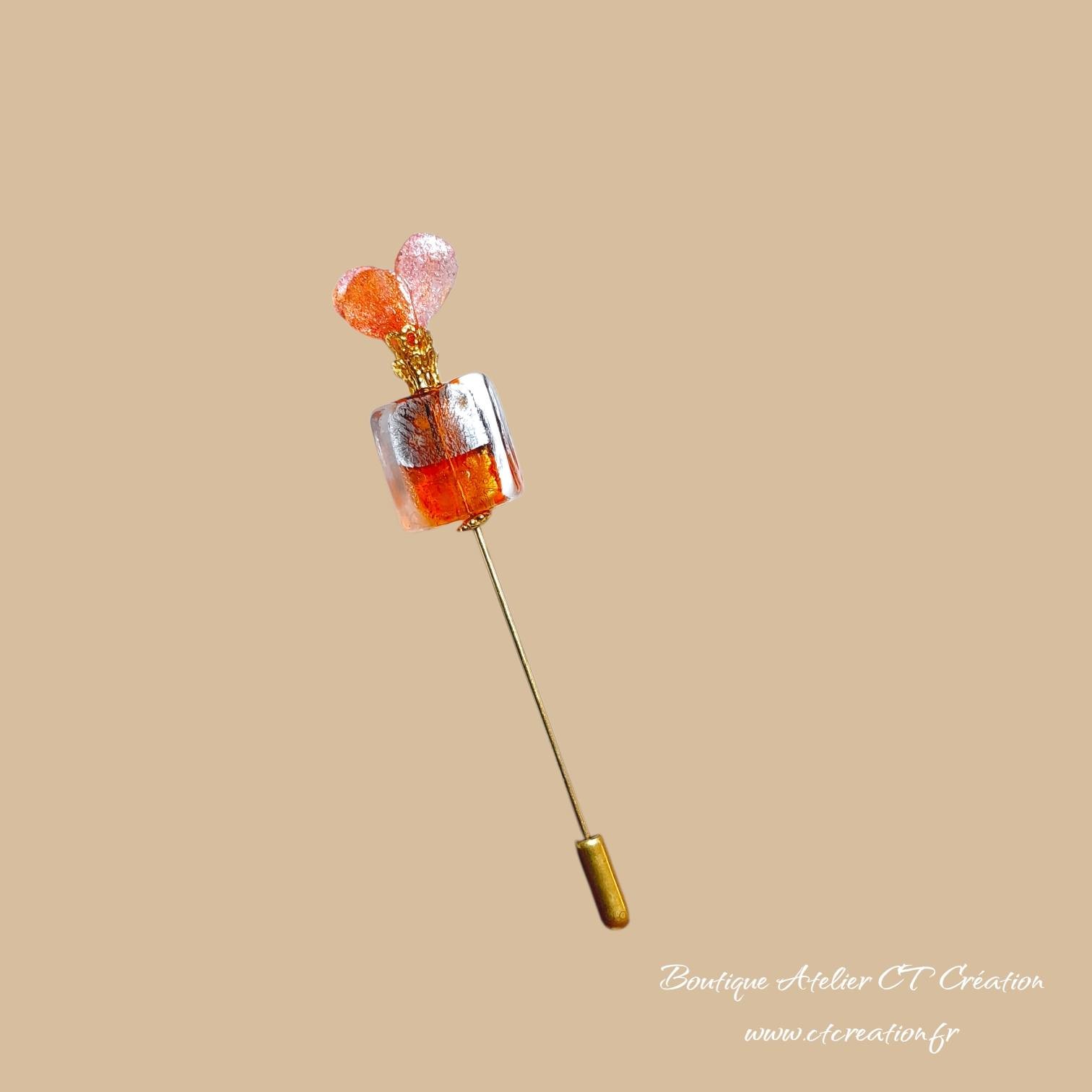 Cette pièce unique se compose d’une délicate perle aux nuances mandarine et beige, subtilement texturé pour un effet givré.