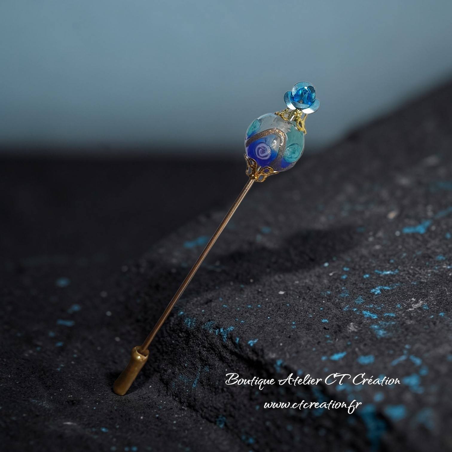 On retrouve sur la partie supérieure une petite fleur bleue sur un côté et un strass en Cristal Autrichien sur l'autre côté