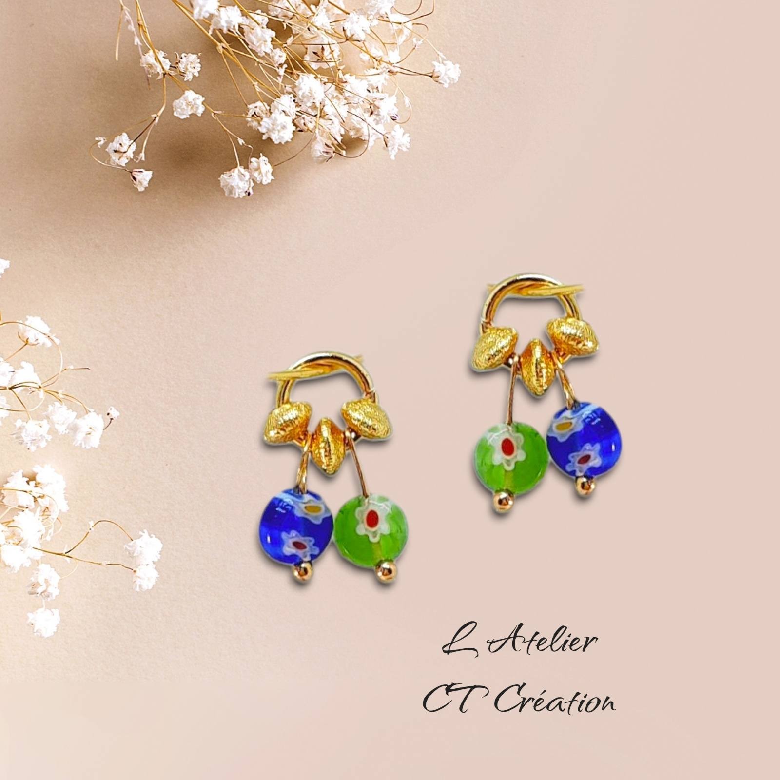 2 Pendentifs de 2 perles (5mm chacune) réalisés avec des perles Millefiori en verre de Murano, une collection très colorée qui nous vient d'Italie