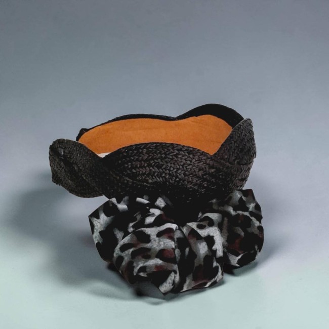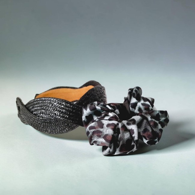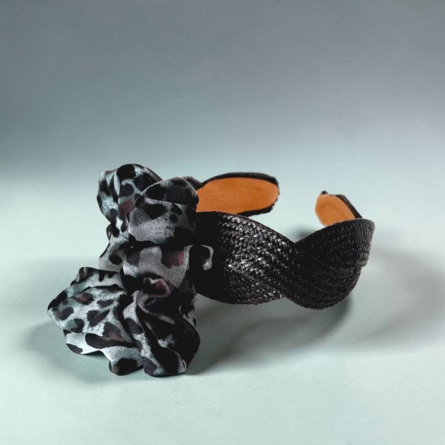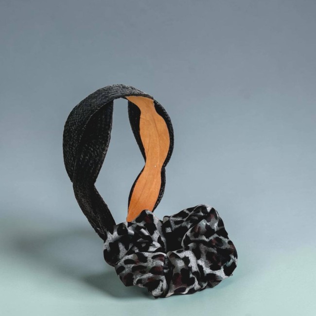 1 chouchou élastique motif léopard vert et noir