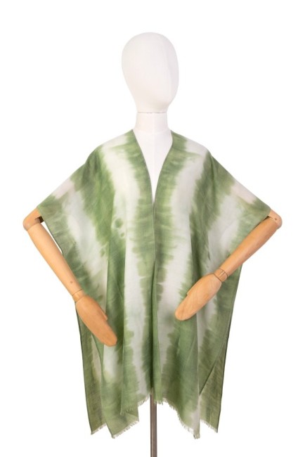Un joli tie and dye vert et blanc légèrement transparent, à porter en robe tunique, un indispensable pour un look de plage très tendance