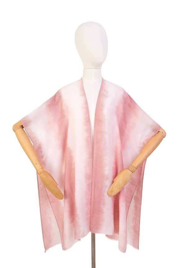 Un joli tie and dye rose et blanc légèrement transparent, à porter en robe tunique, un indispensable pour un look de plage très tendance