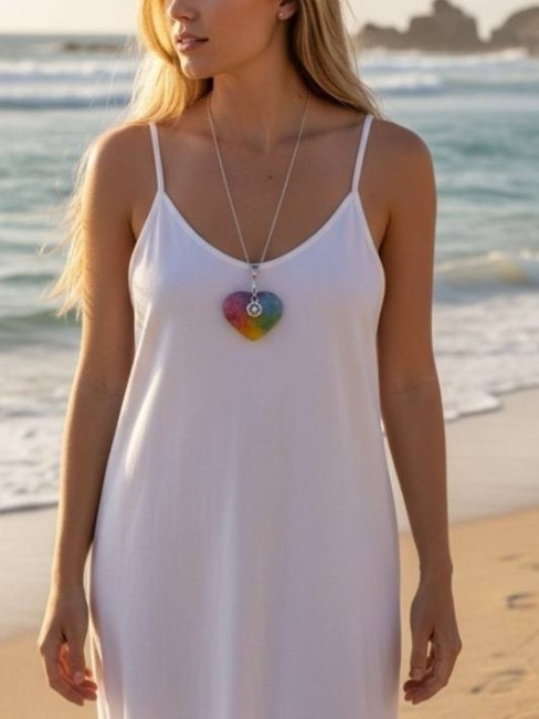Collier Pendentif Coeur Quartz Solaire
