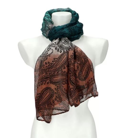 1 Foulard style Charme marron et vert, léger et de belle dimension, il rehaussera toutes vos tenues quelque soit la saison