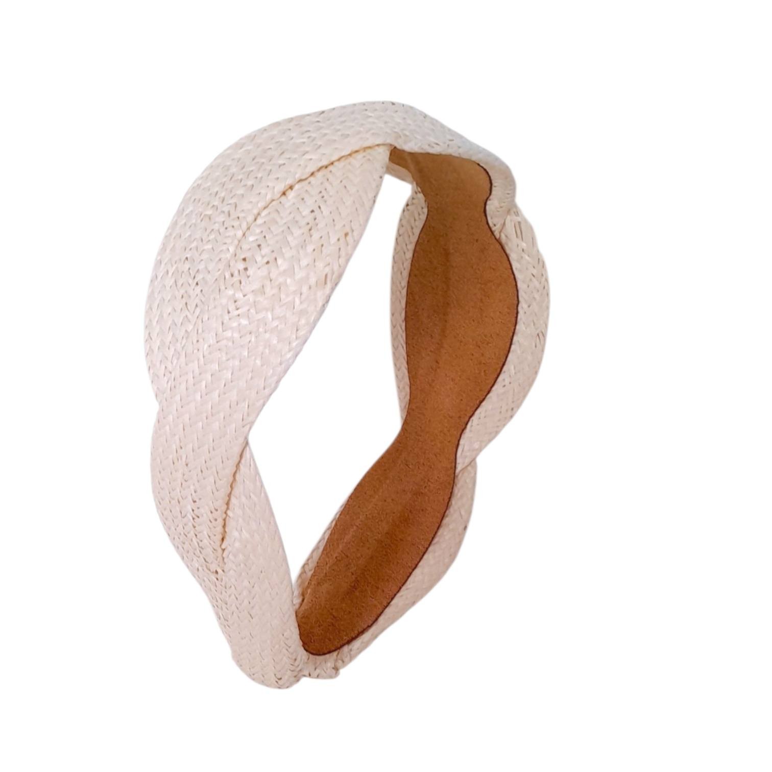 1 magnifique Serre Tête blanc style bandeau, large, en matière souple et naturelle pour apporter une touche glamour à toutes vos coiffures - Largeur : 5cm / Circonférence 50-60 cm / Matière 100% zostère